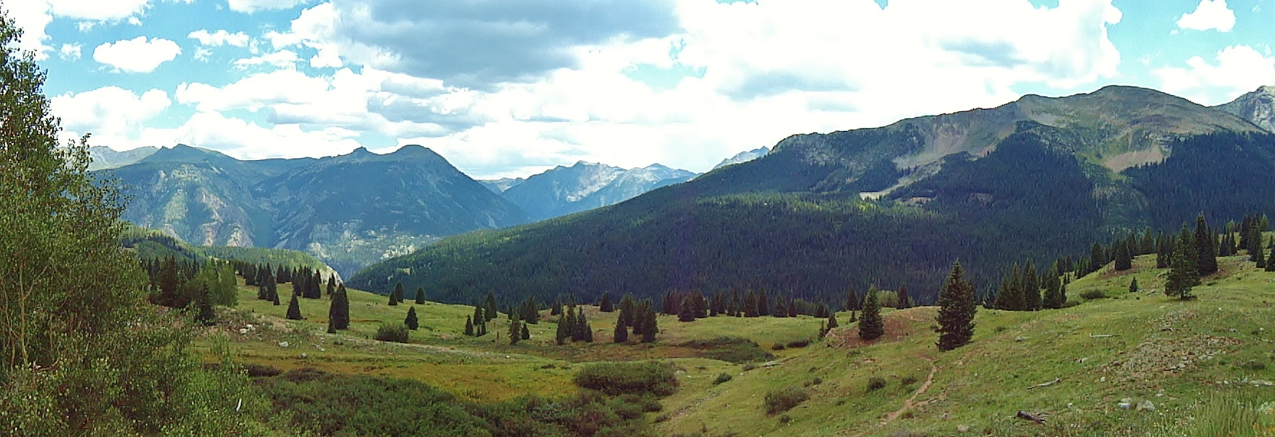 American Basin looking north. Most approach it from the north, where a rugged Jeep road will take you to the end of the Grizzley Gulch trail.