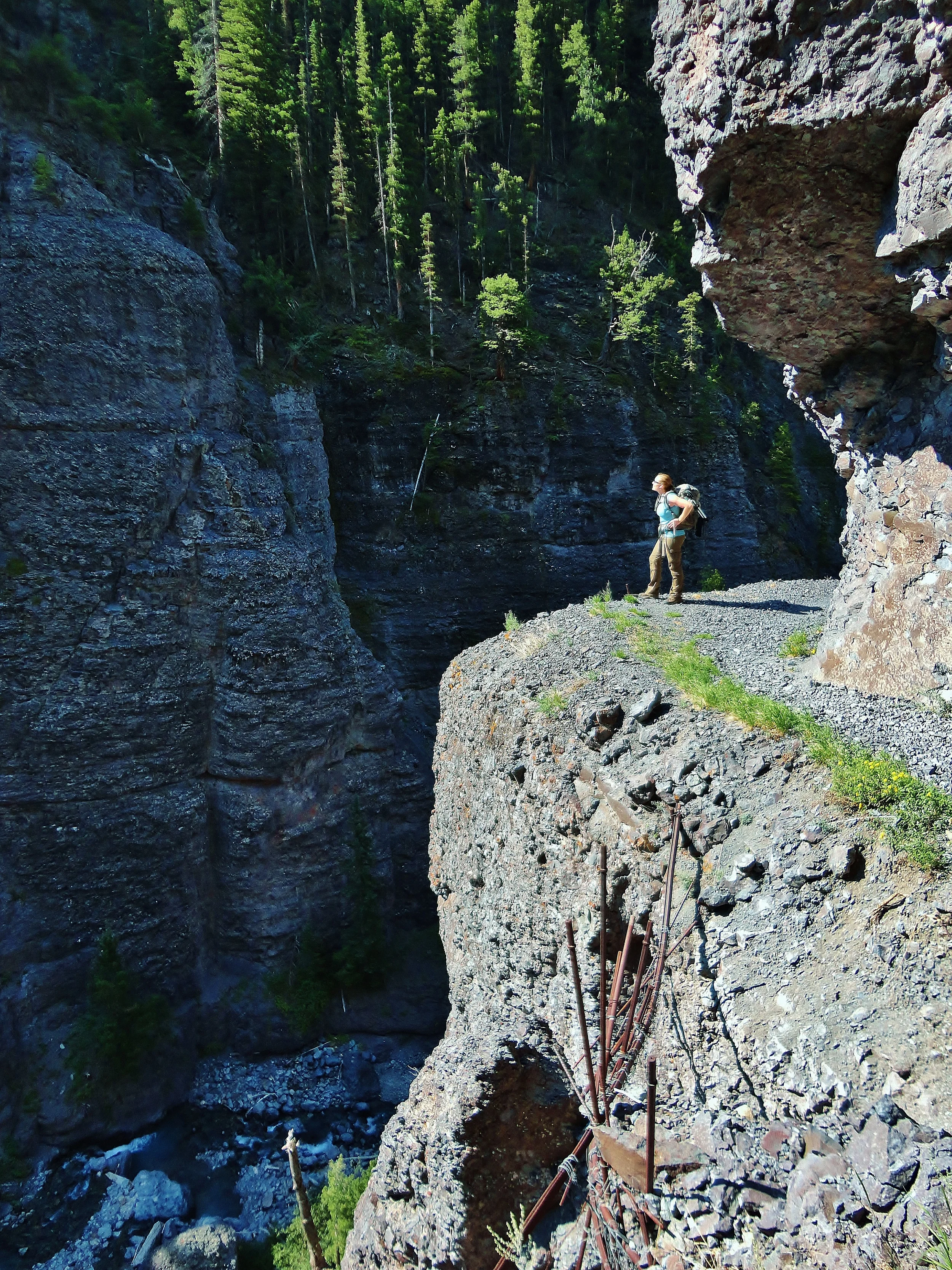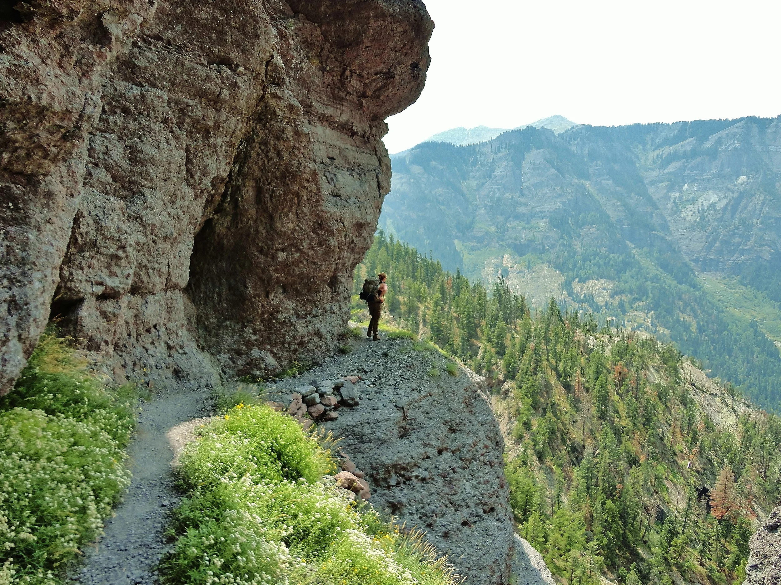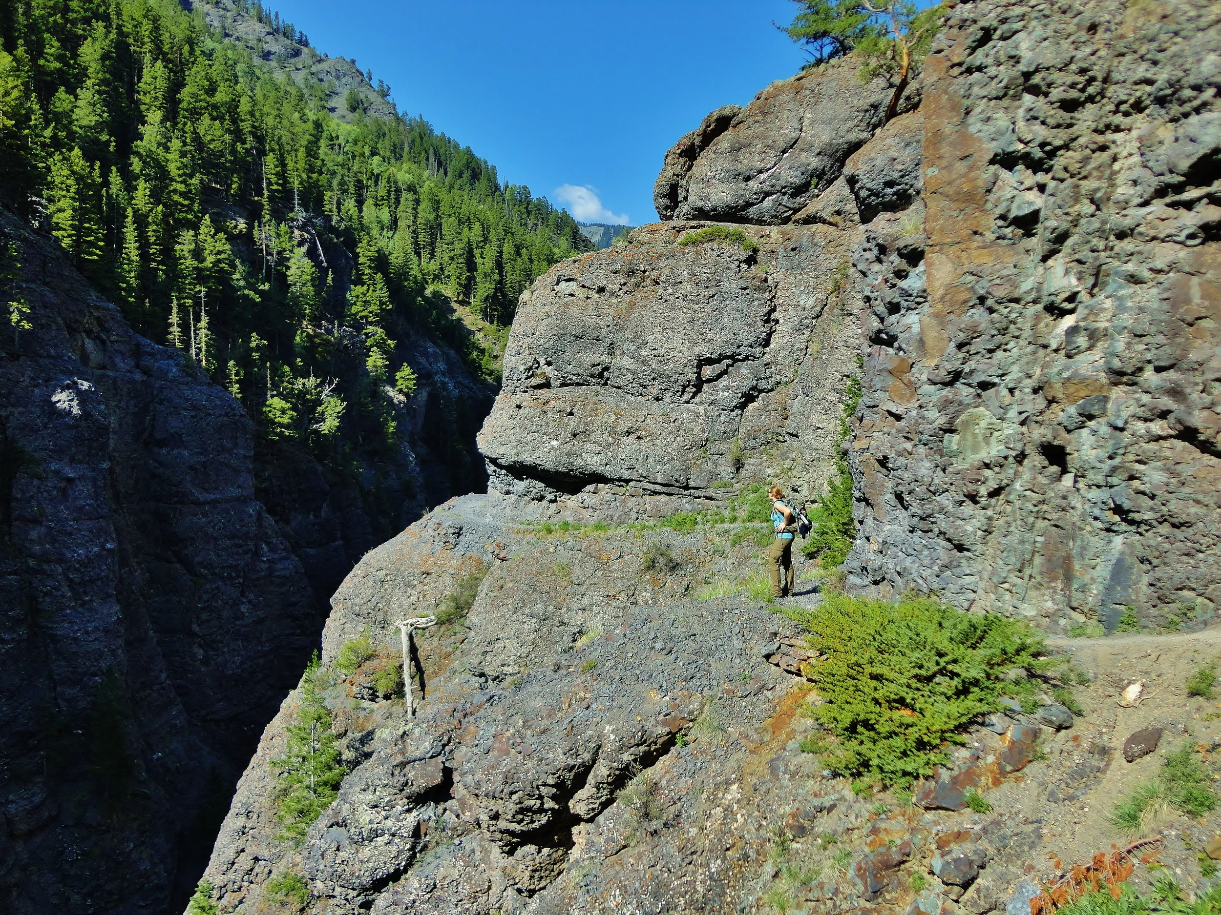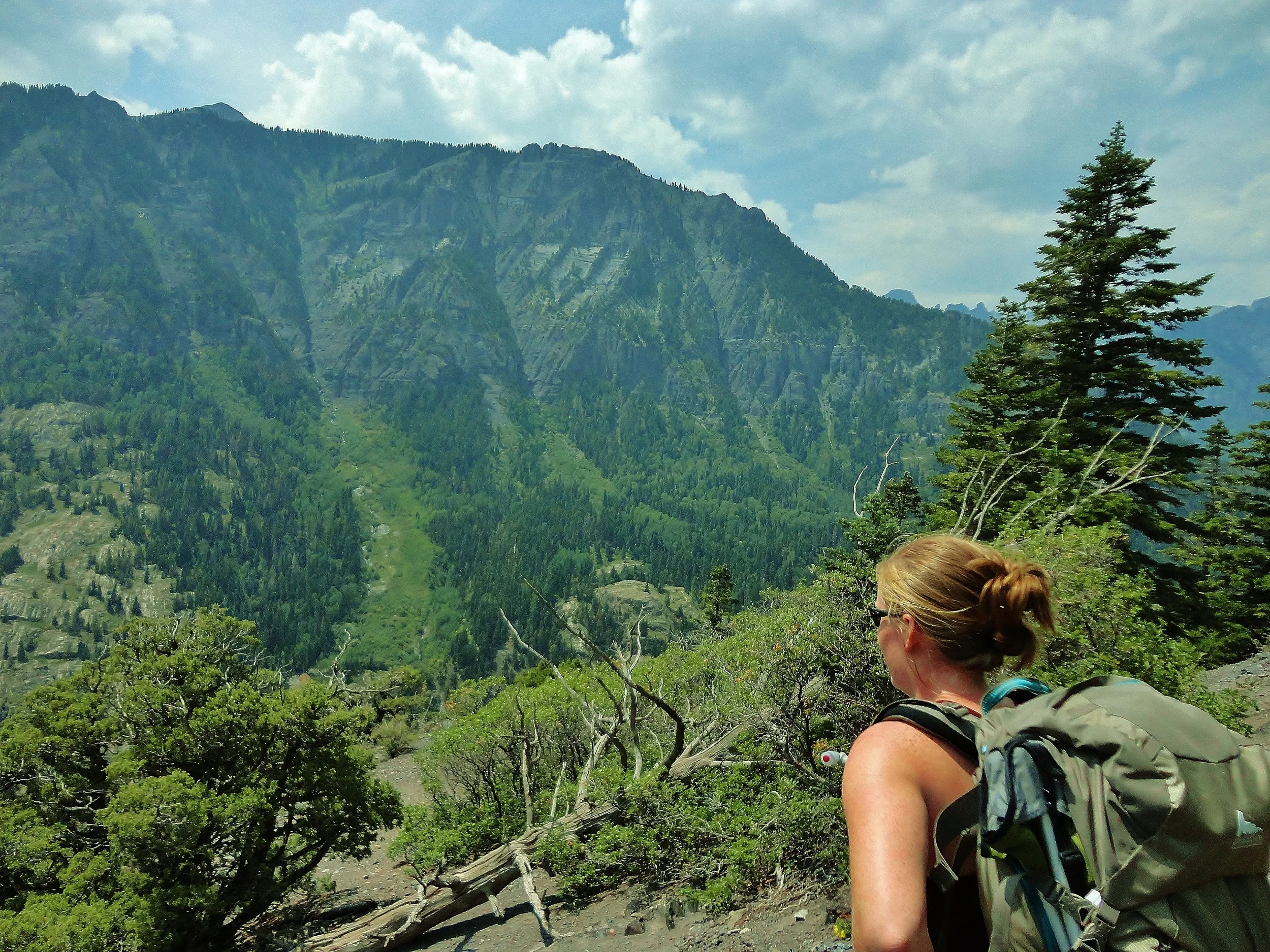 This trail starts right off the US550 just south of Ouray, so we camped in Ridgway, and had breakfast at another great spot in what was quickly becoming our favorite town. We hit the trail mid morning, and started off with a grueling switchback ascent. The views were worth it, and the trail soon headed along the side of a steep canyon.