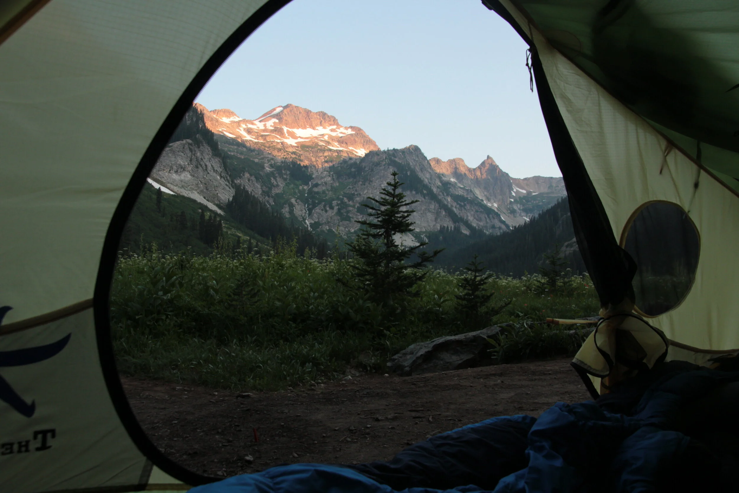 So after cutting the Sol Duc loop short by a day, we made our way leisurely from Port Angles to the Cascades. We stopped in quaint village of Sequim (pronounced Skwimm), known for its massive lilac fields, and took a ferry from Kingston to Lynwood to spend another night in north Seattle. We stopped by an REI to resupply, where the were unfortunately sold out of the good insect repellant (hint: foreshadowing). The next day we drove a couple hours out to the Phelps Creek Trailhead, up a forest road from Cole’s Corner, WA. We decided to leave the rental vehicle before the road got really gnarly, but thanks to some trail magic, we got a lift the last mile to the trail.
