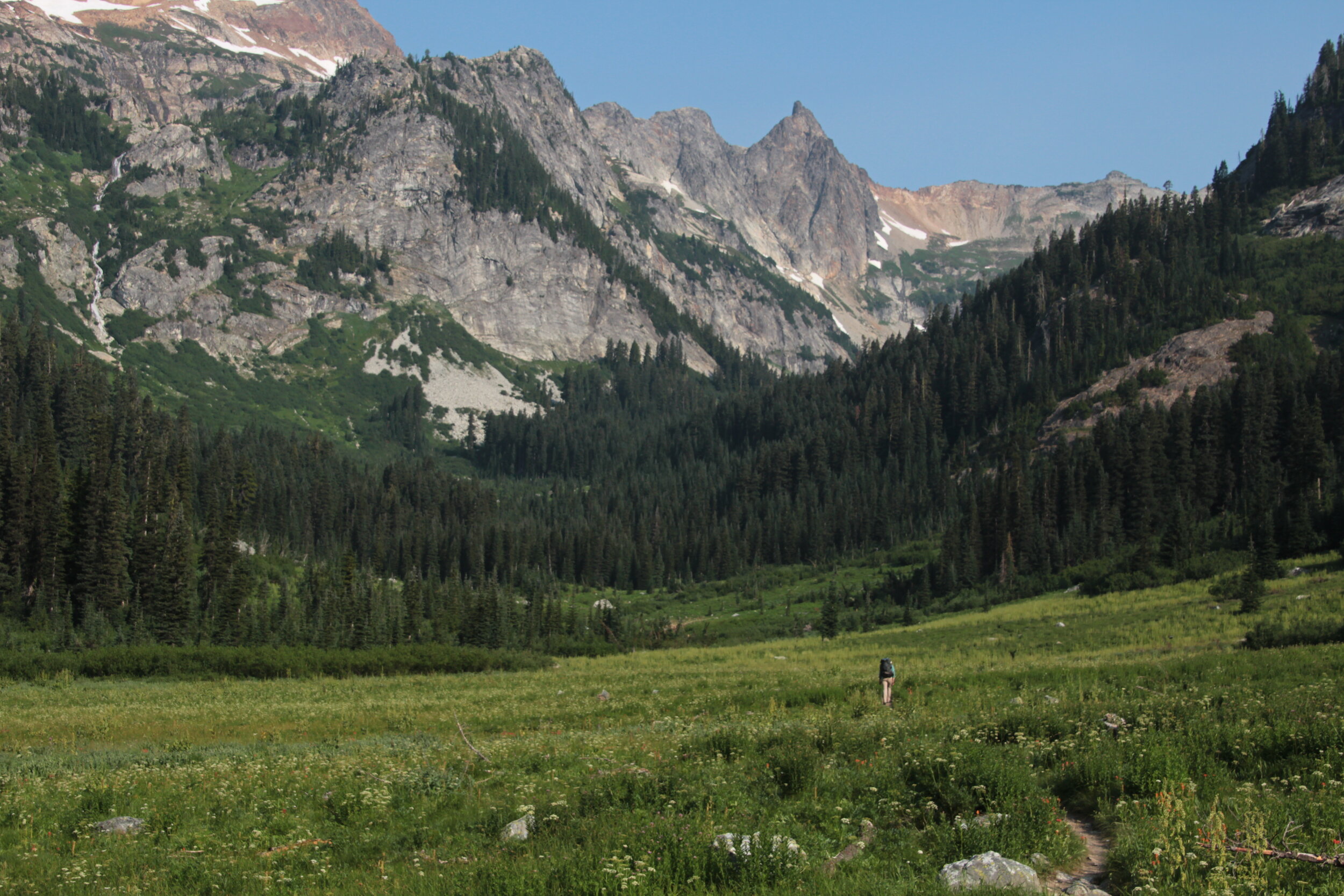 After meandering along Phelps Creek, we camped at the foot of Spider Meadow, ringed by an amphitheater of peaks. It was an amazing campsite!