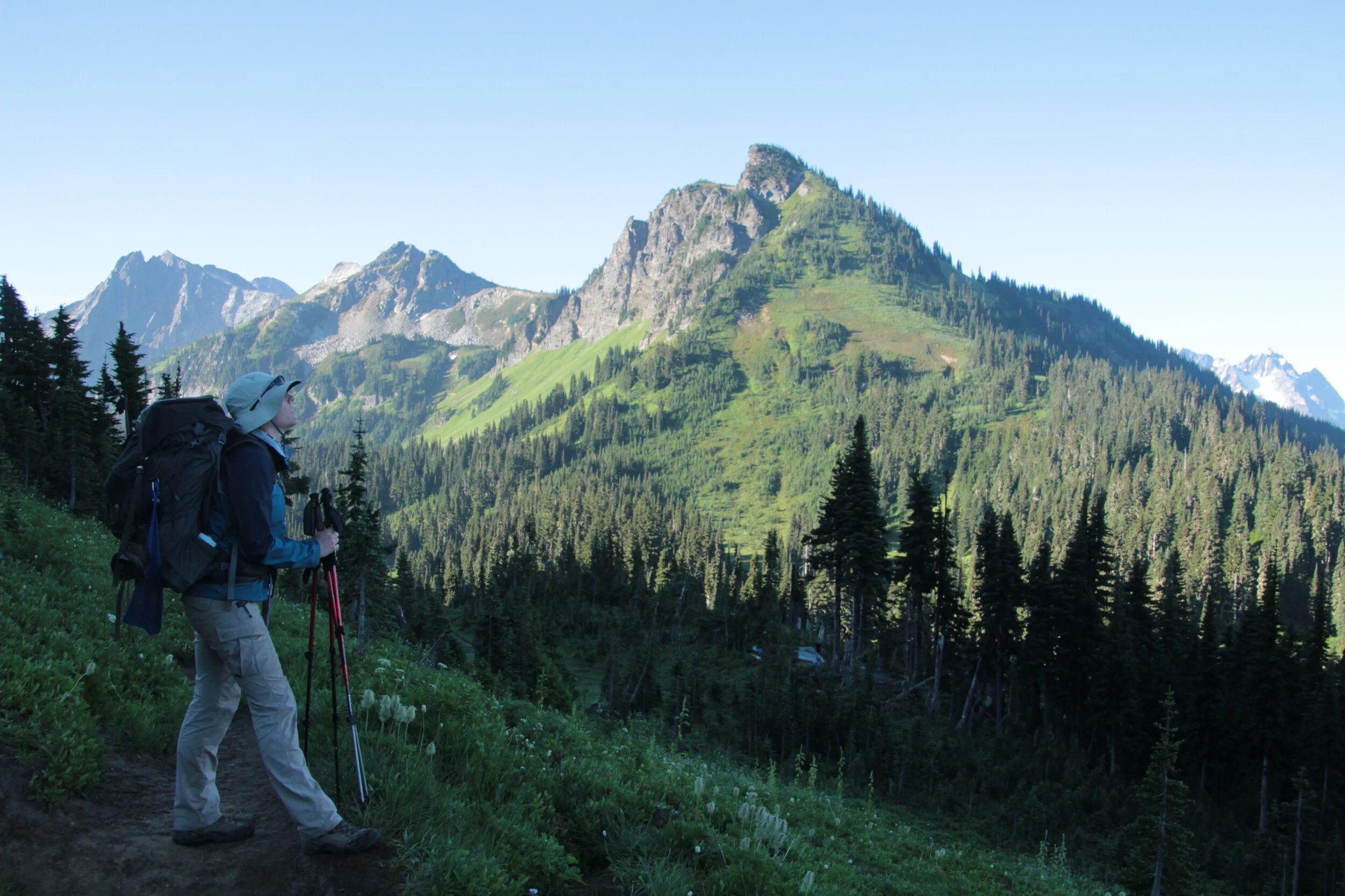 The next morning, we joined the PCT at Suiattle Pass, and caught our first views of Glacier Peak