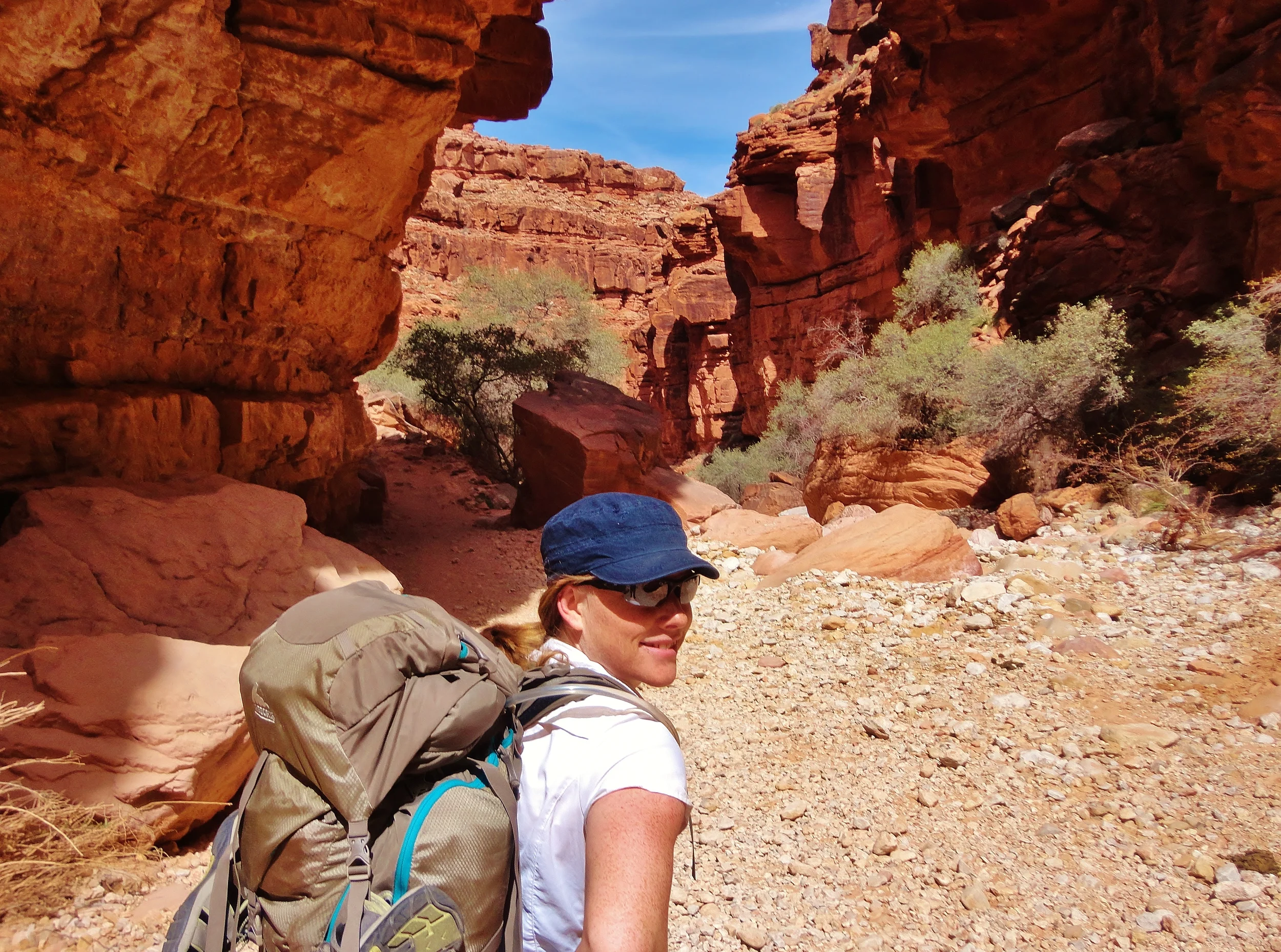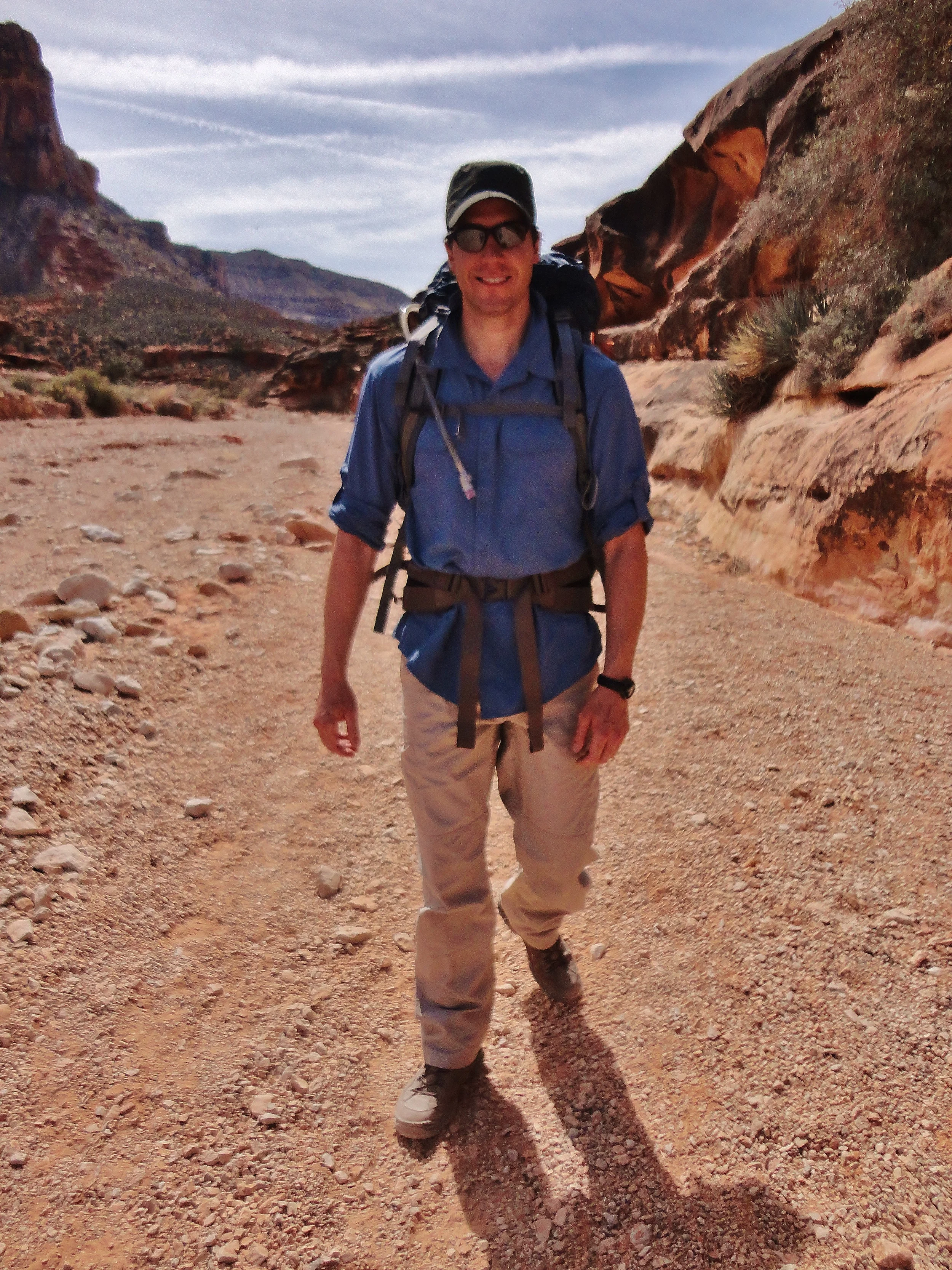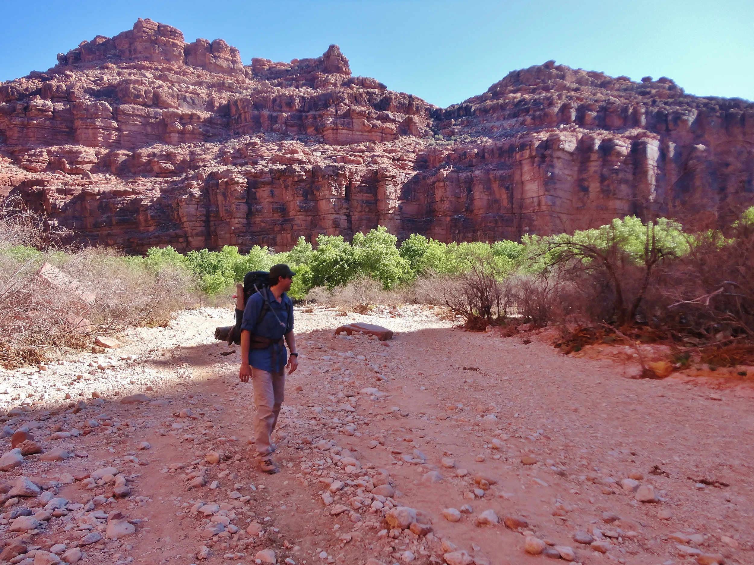 The hike in is all downhill, but the main portion after the initial descent is along a dry river bed, with lots of loose sand and rocks.