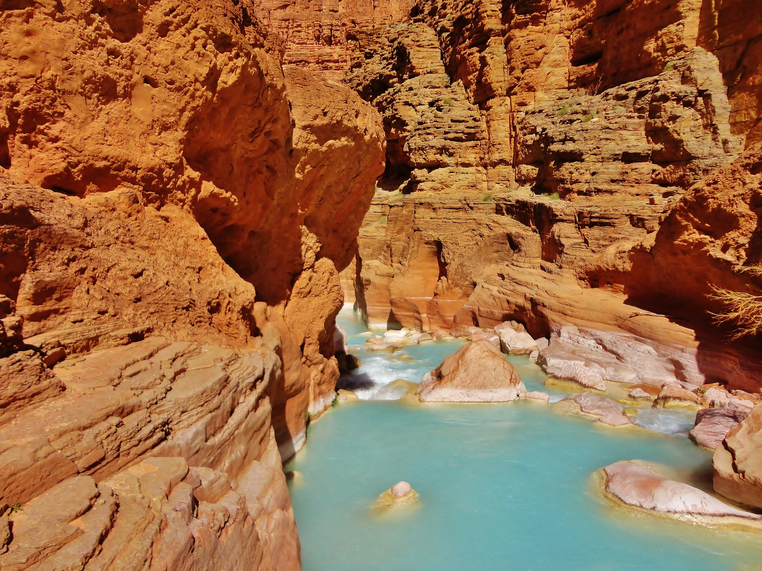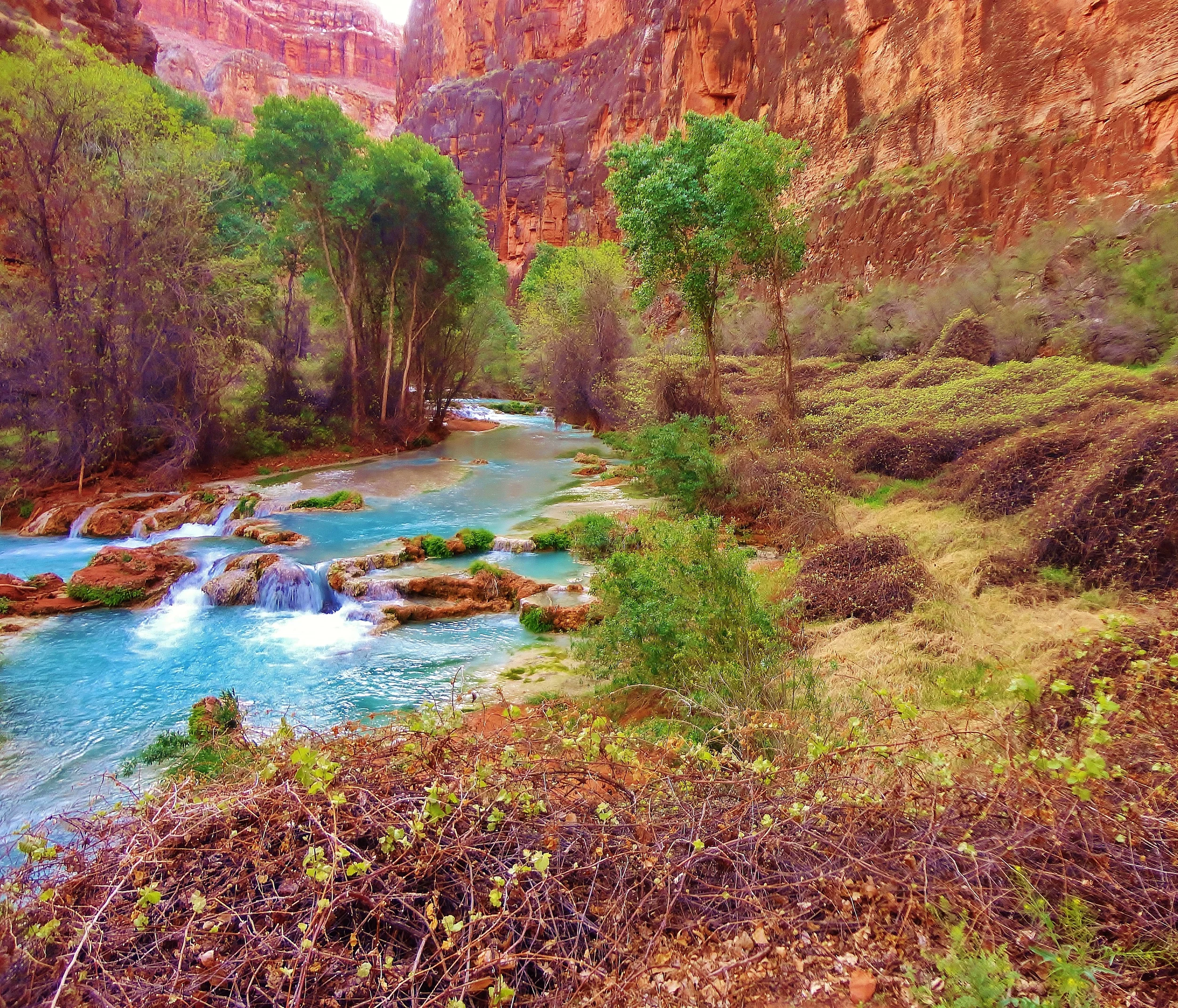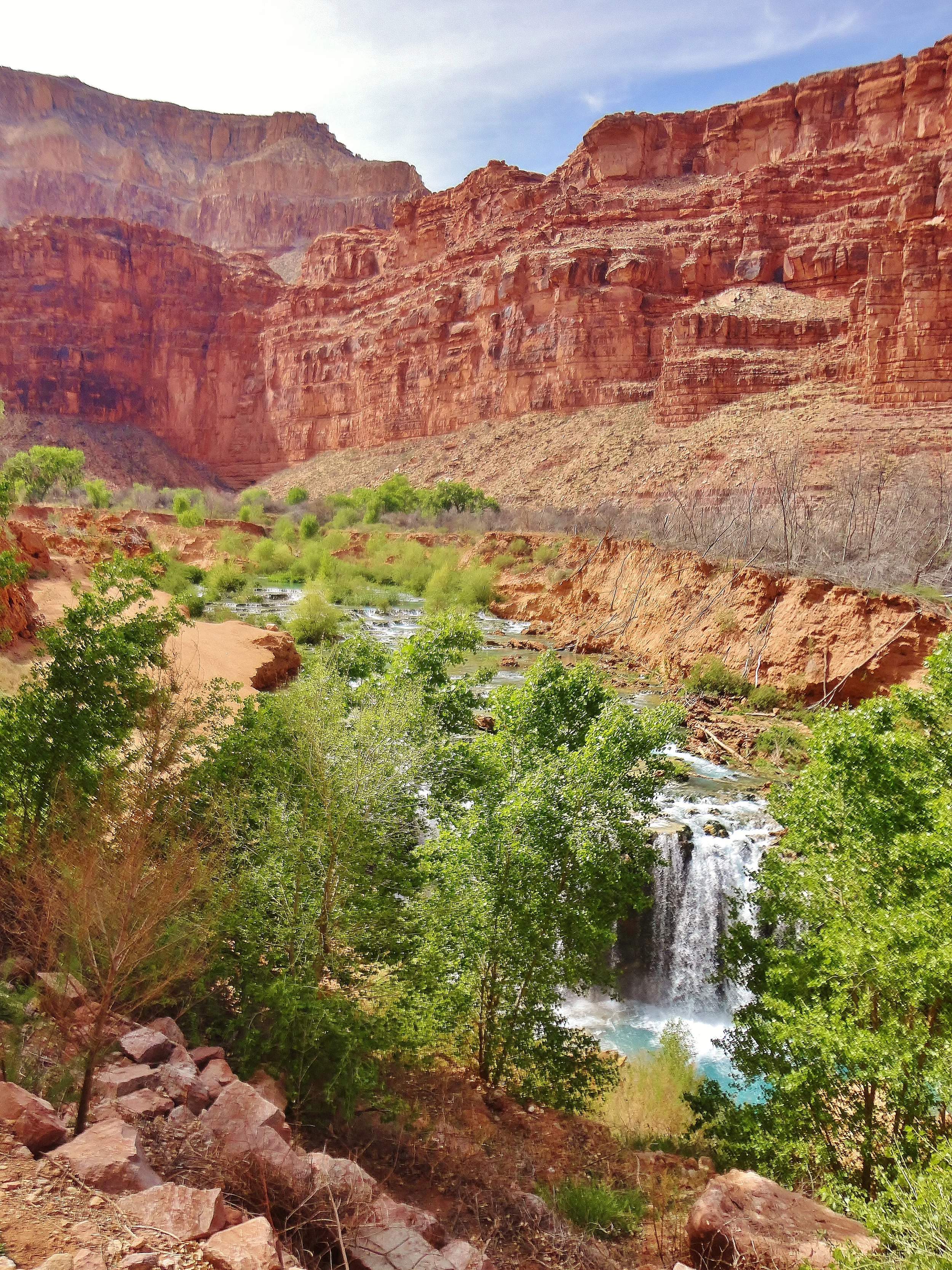 After hustling through the less-than-photogenic village of Supai, we made it to the first falls in less than 3 hours.