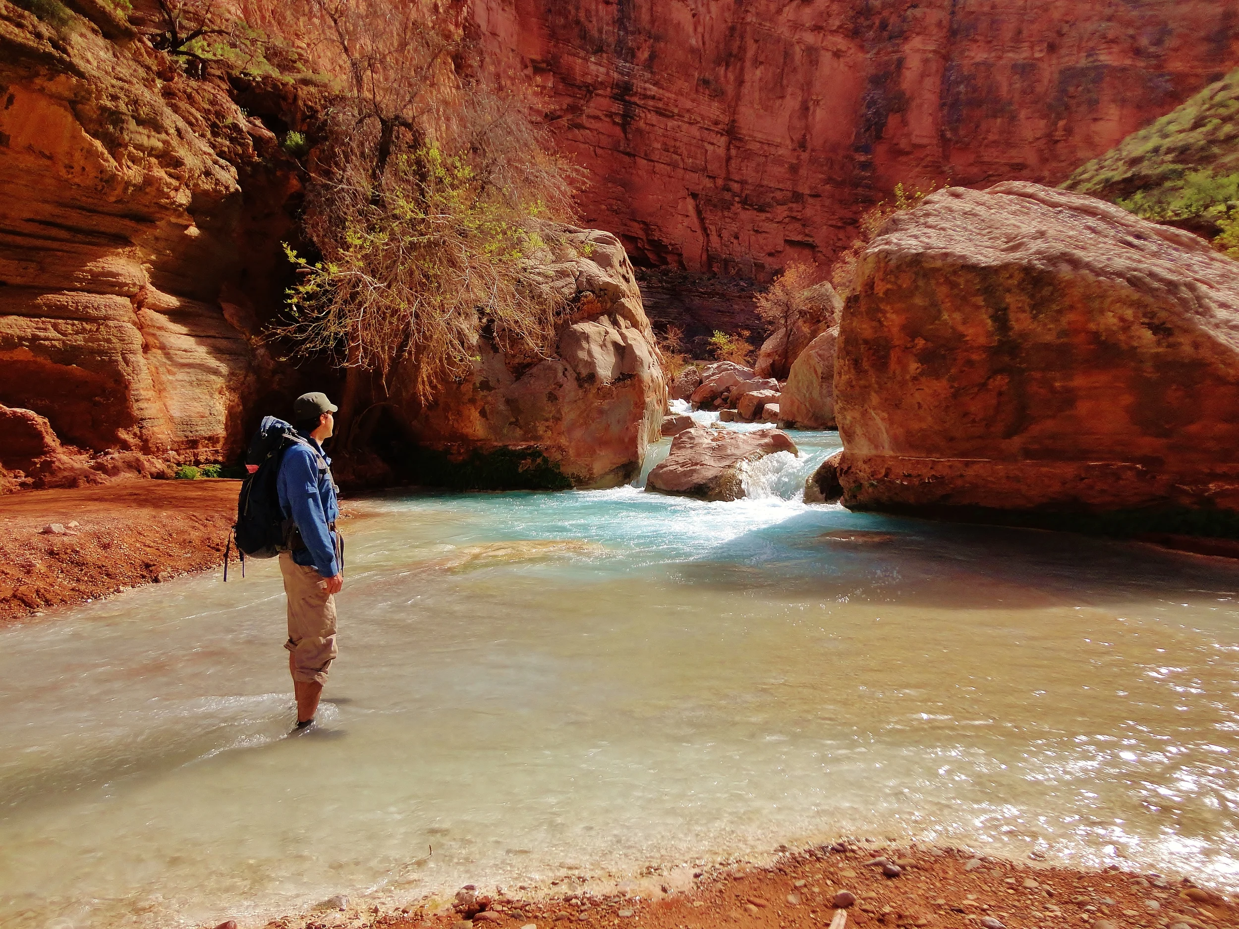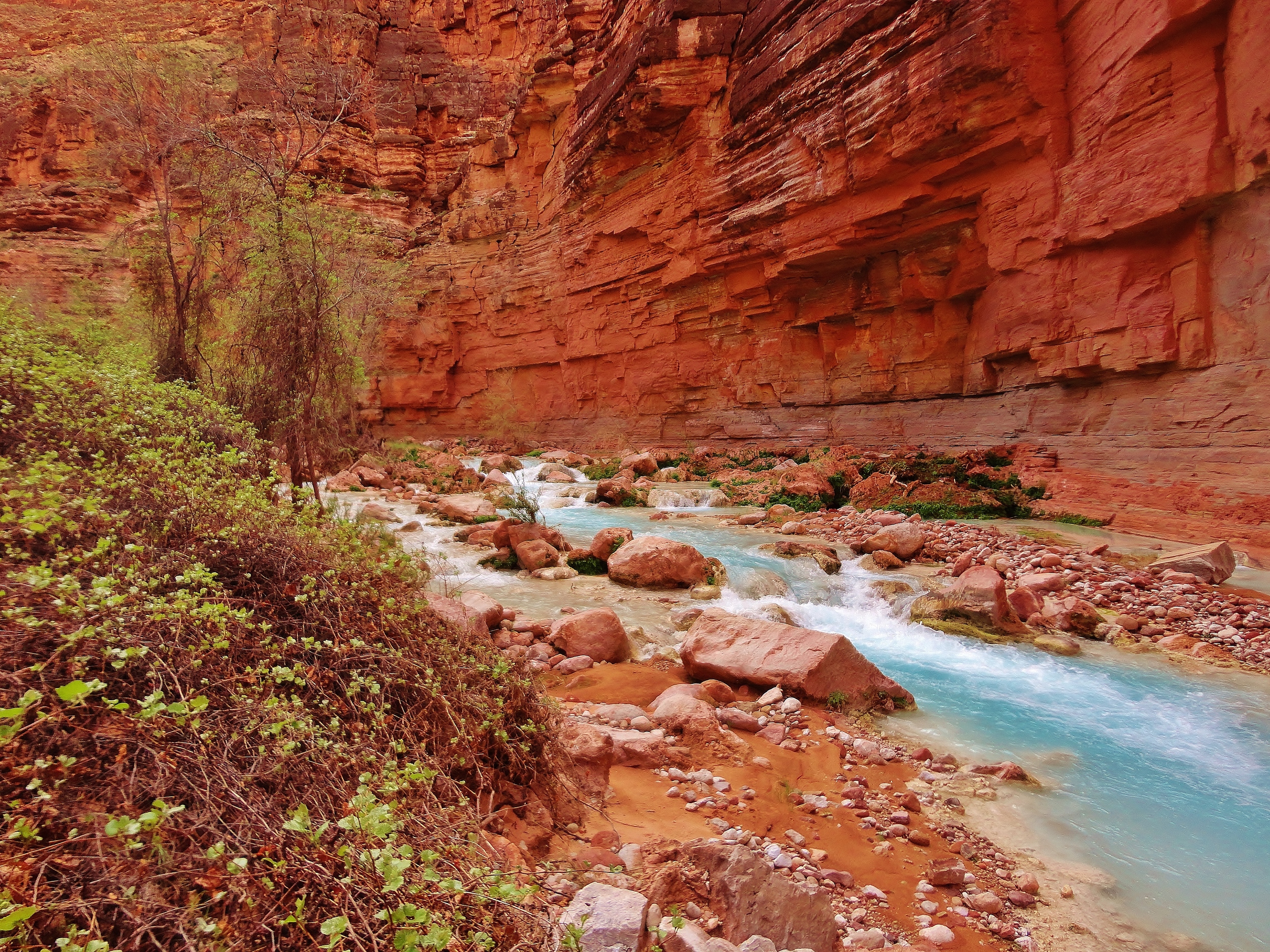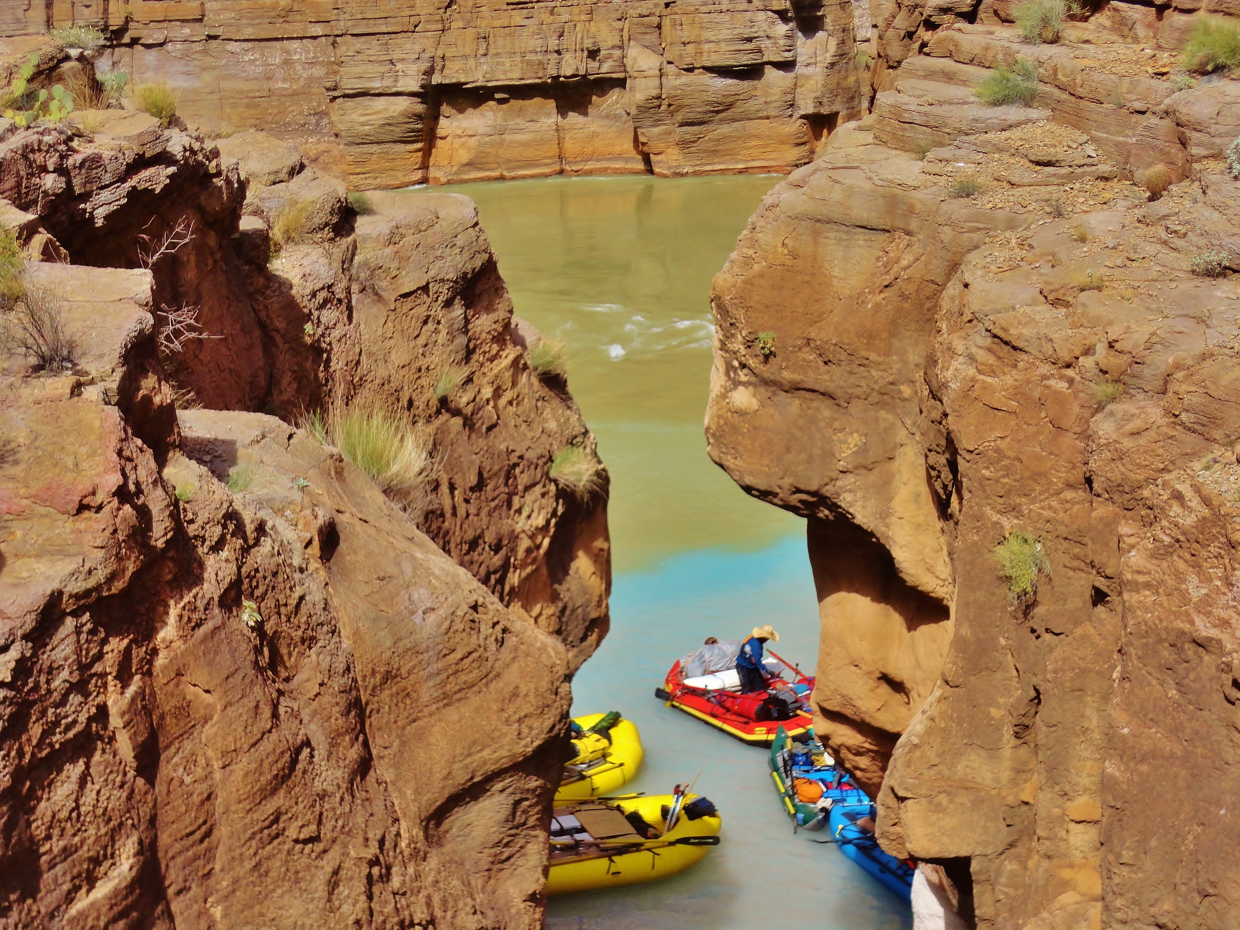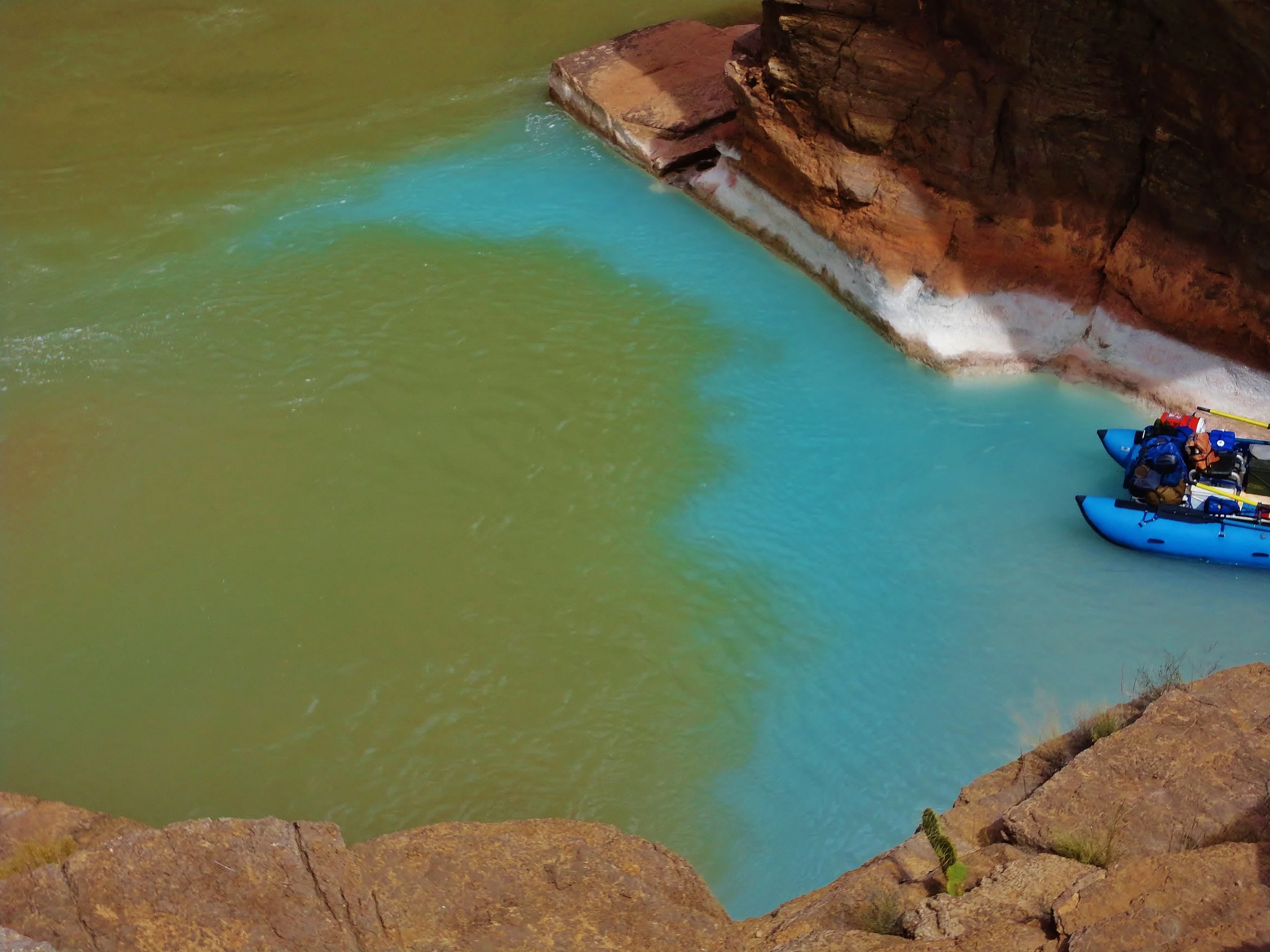 Another bend of the river, and there it was--the shocking blue of Havasu Creek ran into the dark green of the Colorado River, and we were in the vastness of the Grand Canyon.