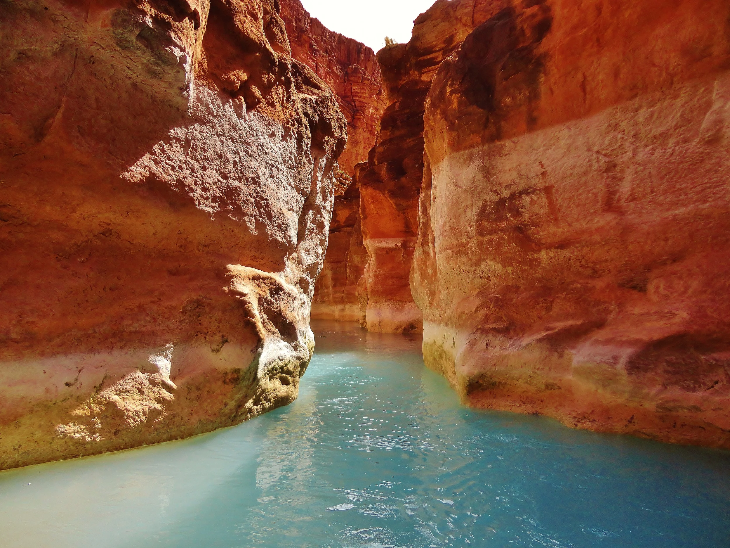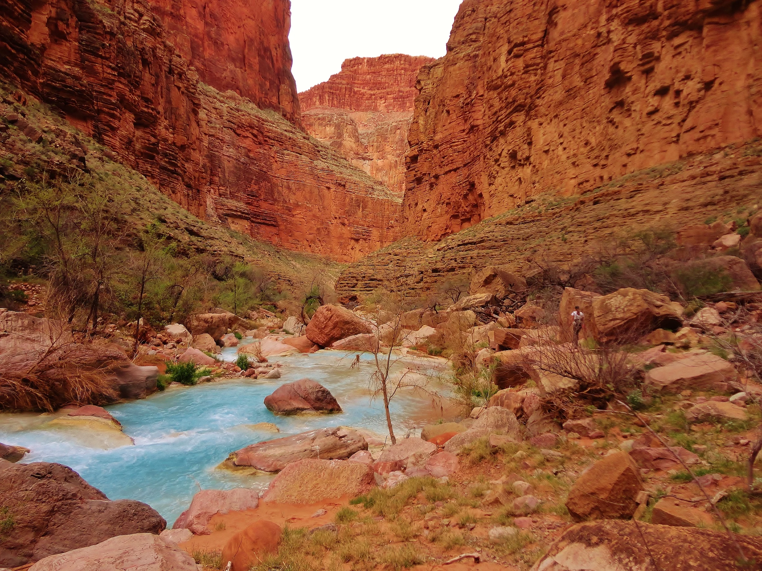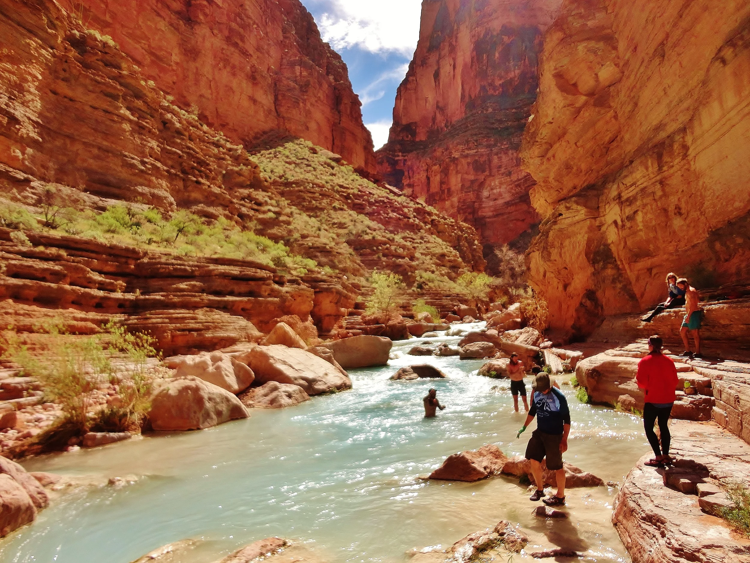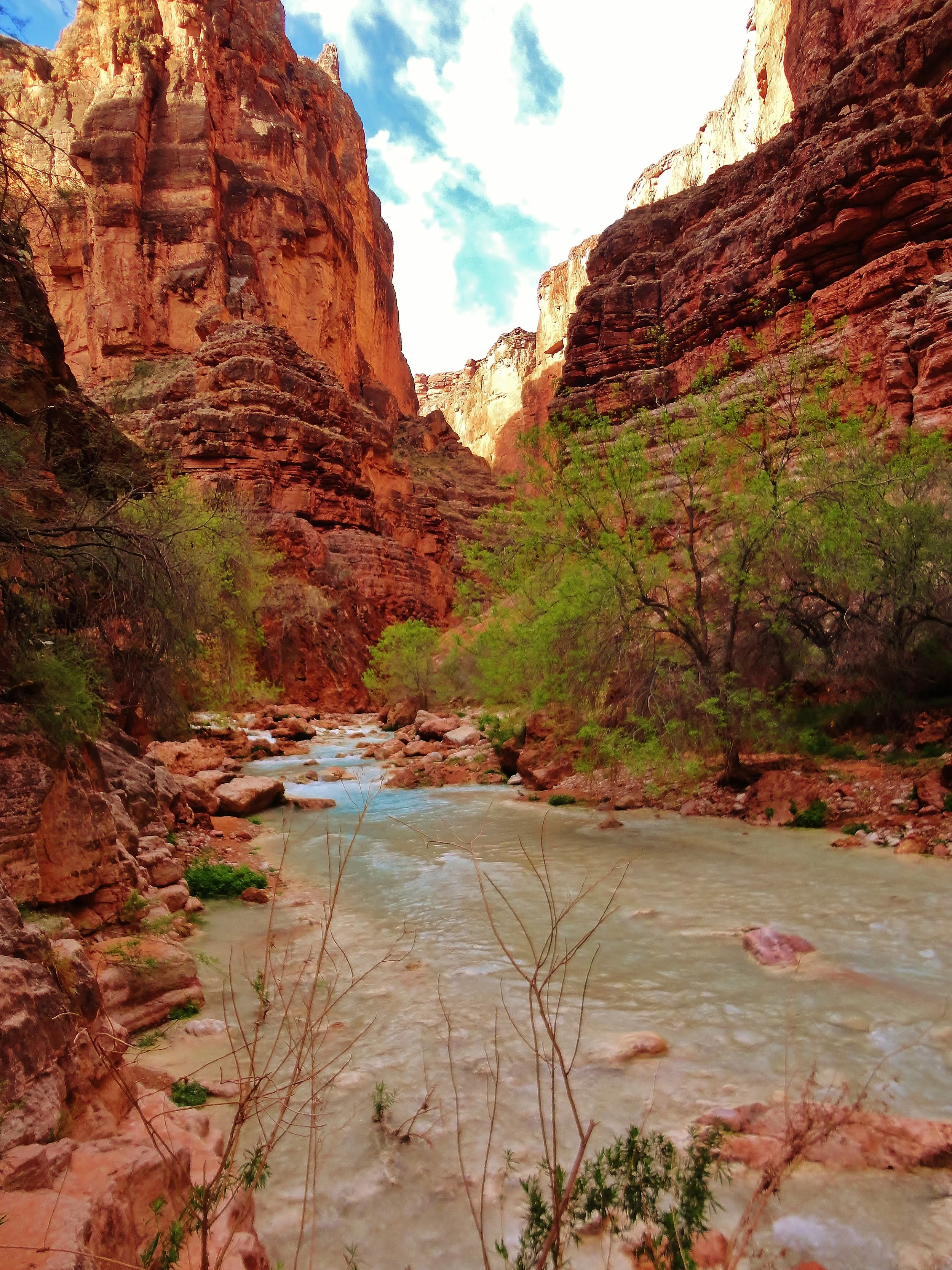Another bend of the river, and there it was--the shocking blue of Havasu Creek ran into the dark green of the Colorado River, and we were in the vastness of the Grand Canyon.