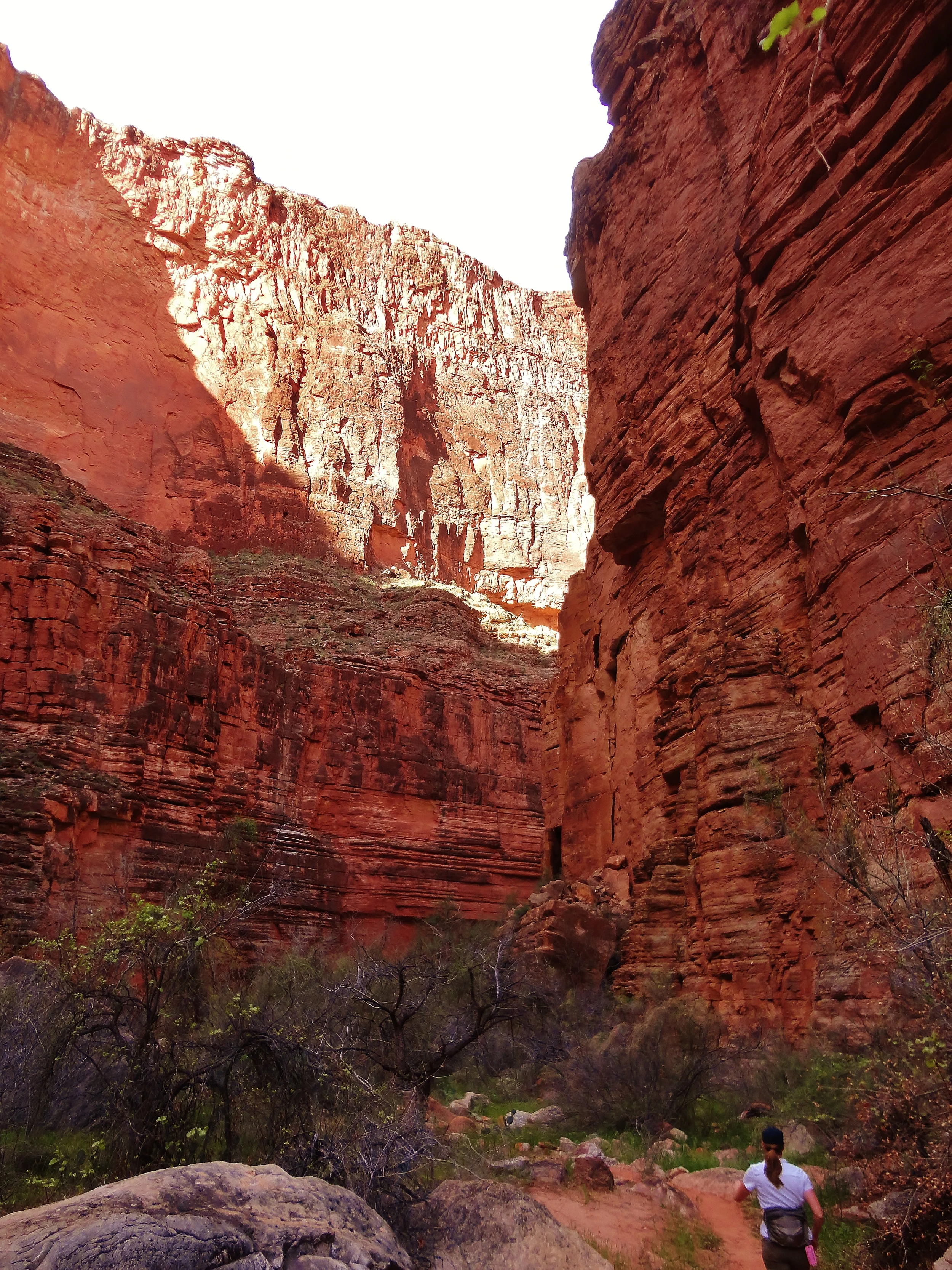 As we got closer to the Colorado, the walls narrowed and the creek widened. The trail climbed up the sides or the canyon, affording some great views. Just before we got to the Colorado, we saw the first people we had seen all day. A group that was rafting the entire length of the Grand Canyon, from Lee's Ferry to Lake Mead, had tied up at the confluence of the rivers. They looked really, really sunburned, as they were on day 16 of a 21 day trip.