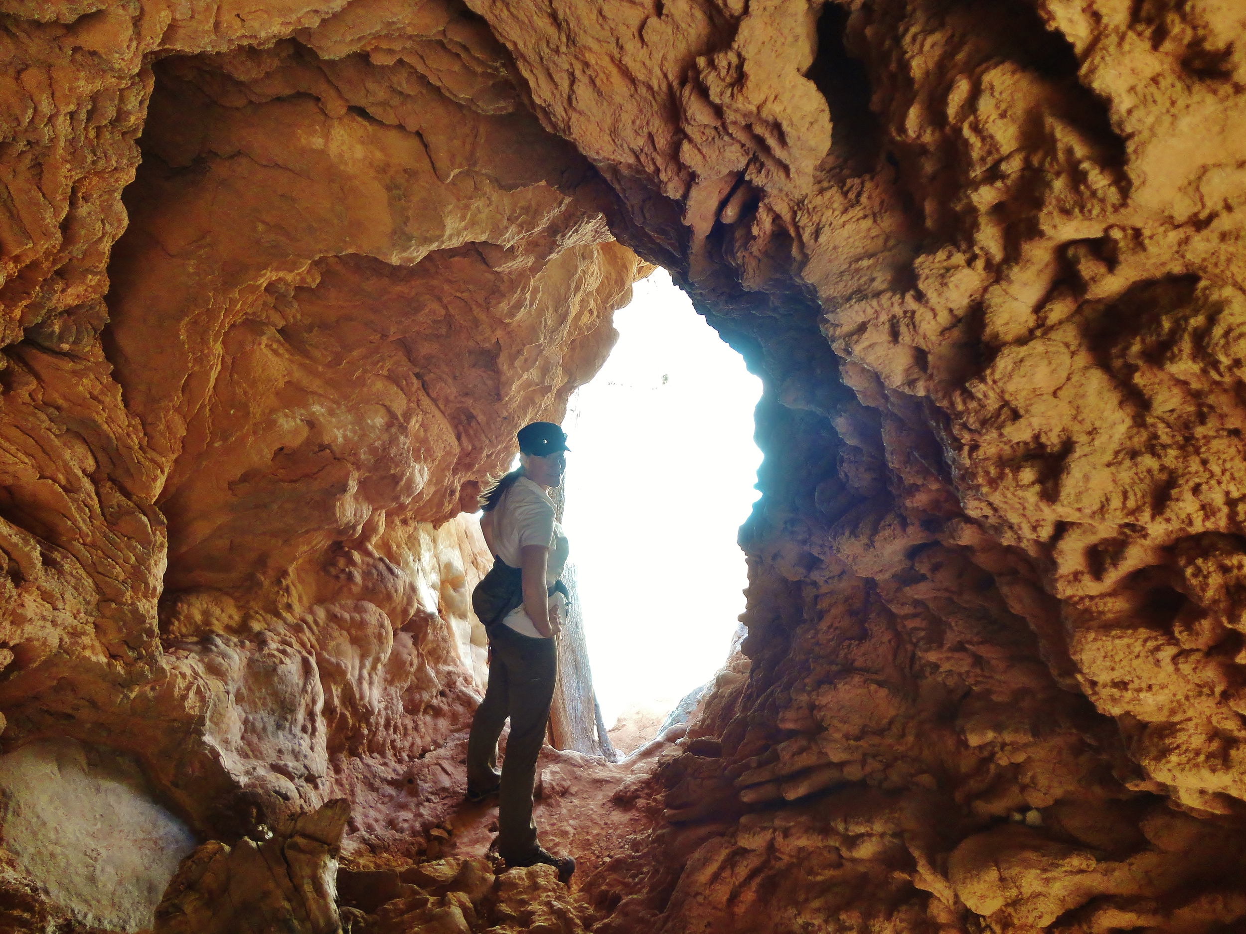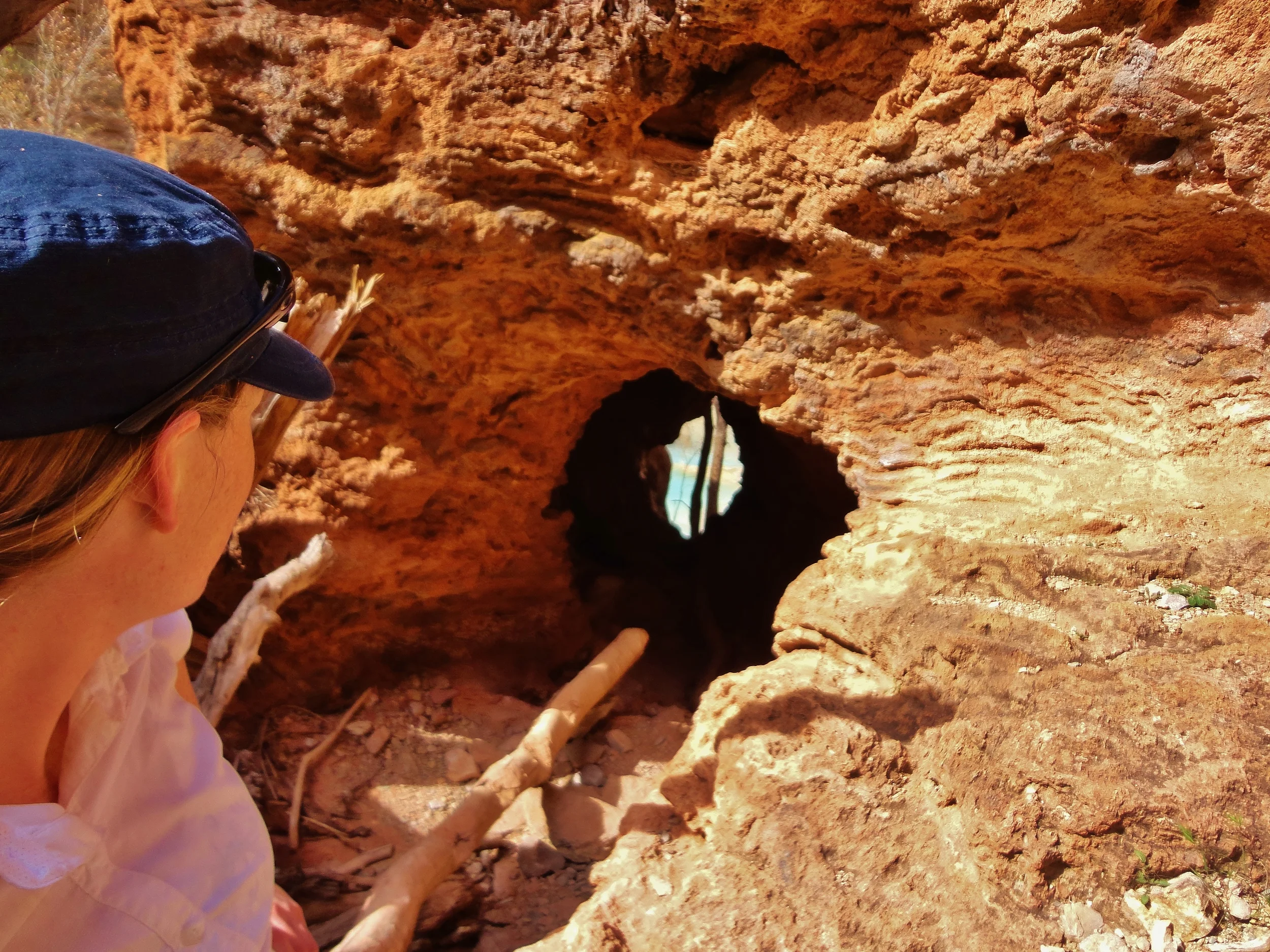 On the way down to Mooney Falls, Sarah had to get a look over the edge from the top. I nervously stood back ready to grab her.