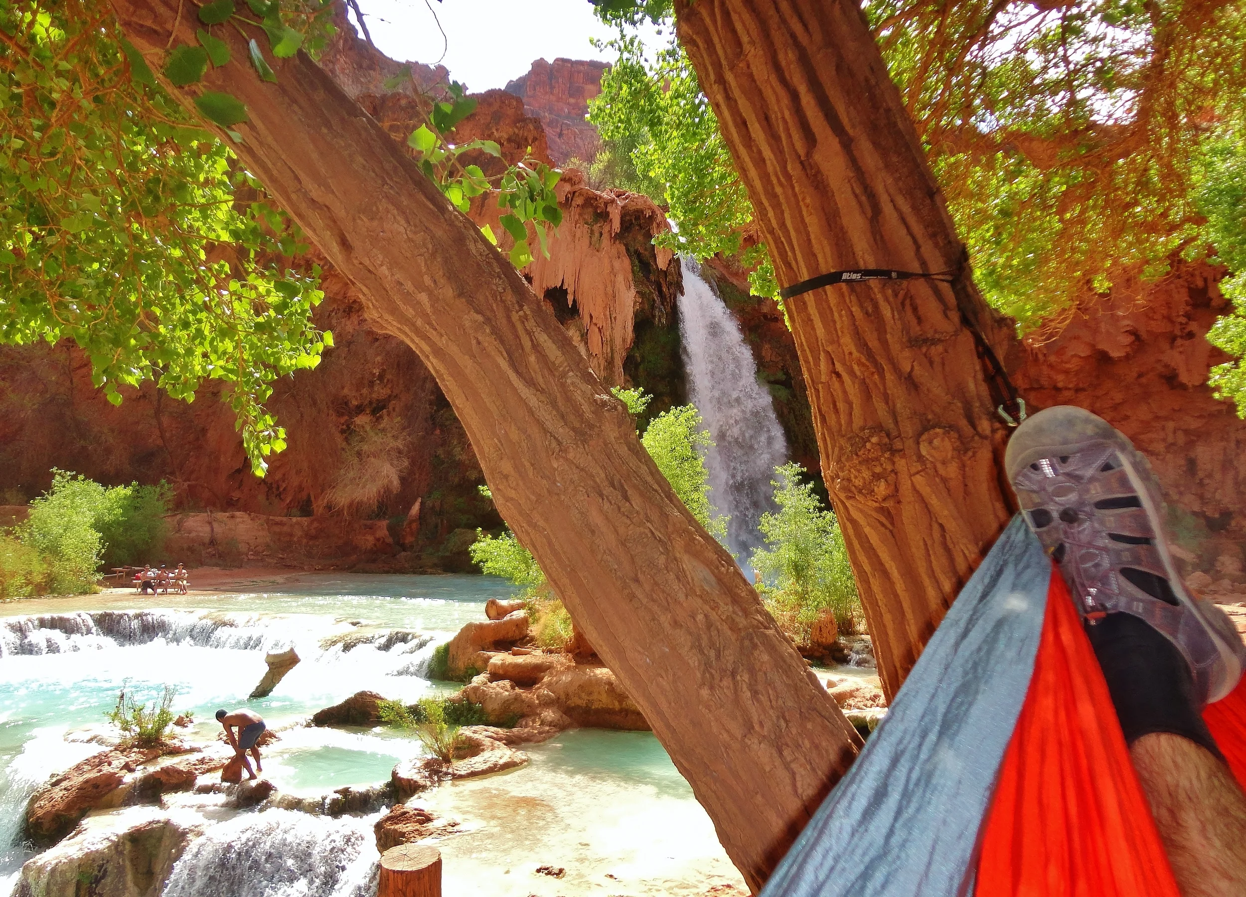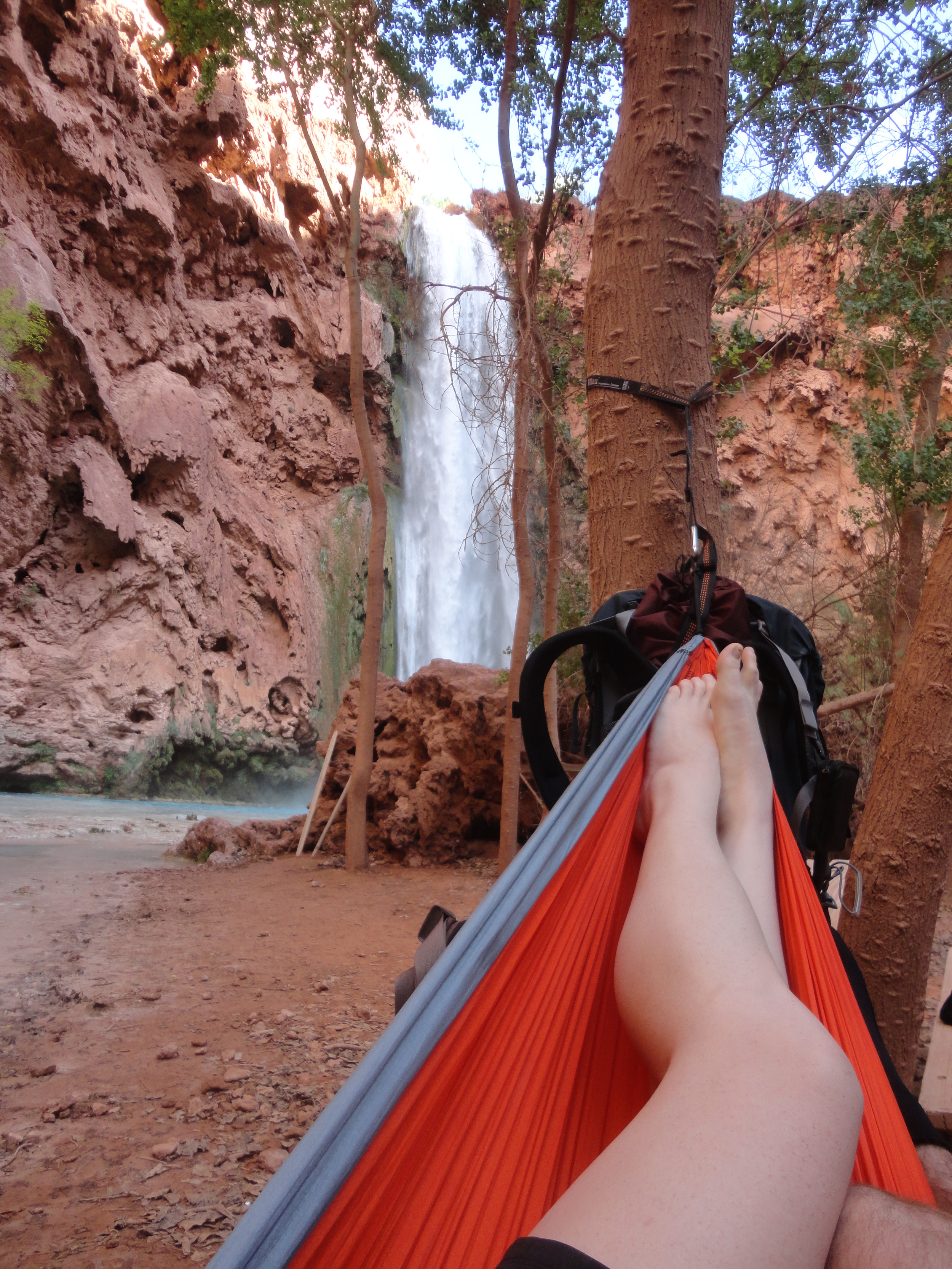 The next day we didn't have any agenda or anywhere to be, so we split our day between Havasu and Mooney Falls. At each one, we slung up the hammock and took in the views and sounds of the falls. If it sounds unbelievably relaxing, it's because it was!