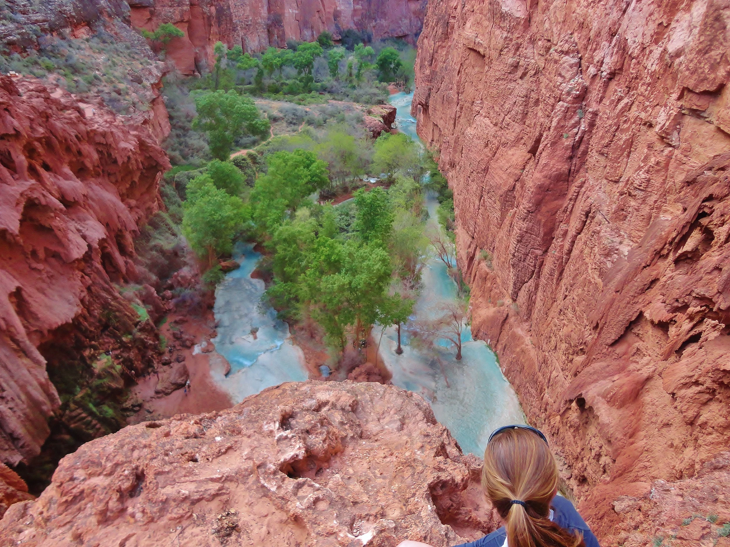 Another few minutes, and we are at that iconic viewpoint, looking down on Havasu Falls. You've all probably seen photos of it in magazines, but I can't emphasize enough that all the pictures do not do it justice.