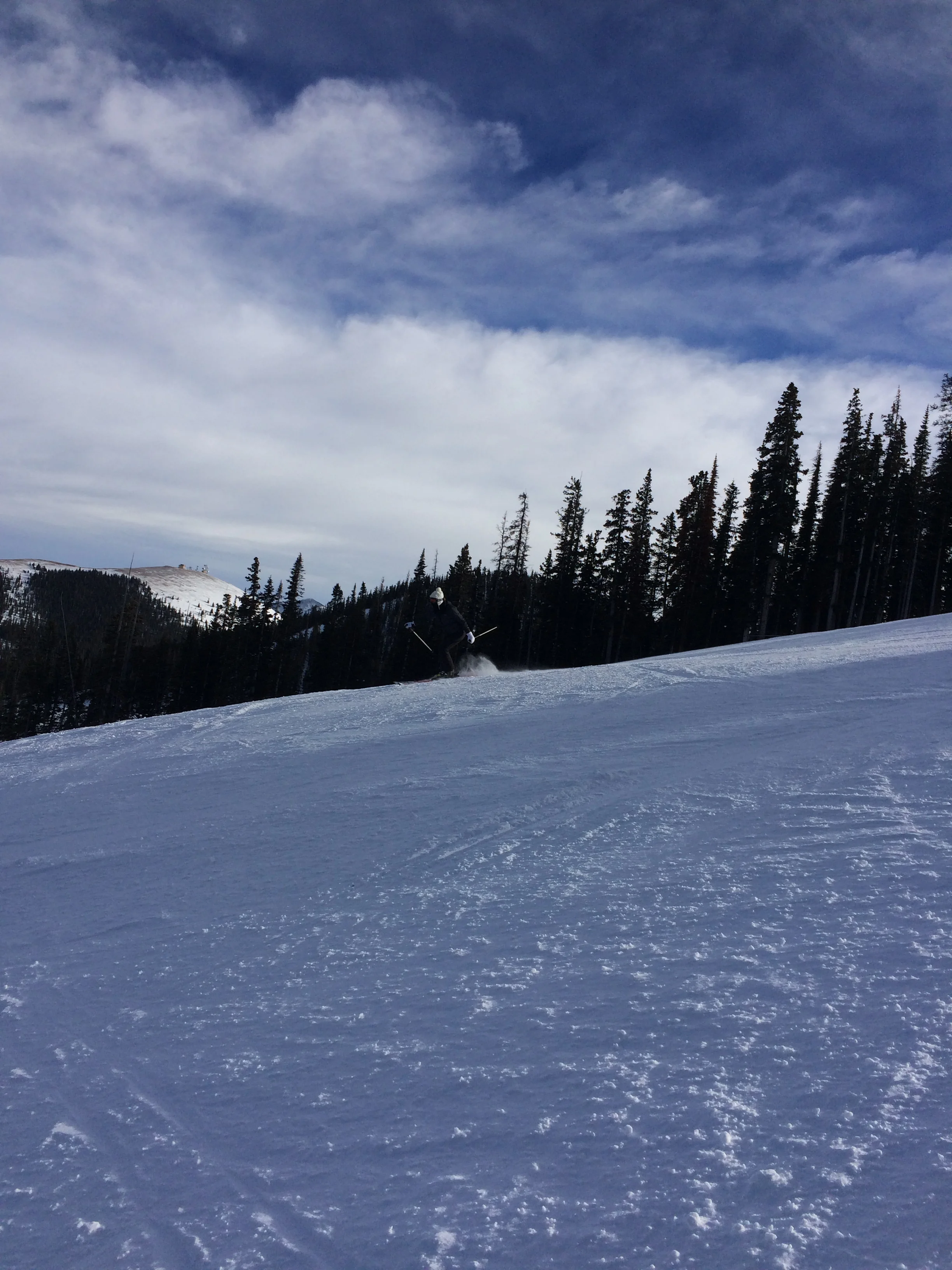 The next day was all about the skiing/snowboarding.  Breck is a truly impressive ski resort, with 5 peaks, over a dozen lifts, and hundreds of trails.  Kasey (grey coat) and her friend Sam joined us for some of the runs.  It had a ton of people on it, but the lift lines were never long.  Sarah and I made our way back and forth across all the peaks, pretty much going non-stop.  The highlight was a bowl section that actually wasn't a double black. Turns out bowl skiing is fun when you don't have to worry about the dying-in-an-avalanche part!