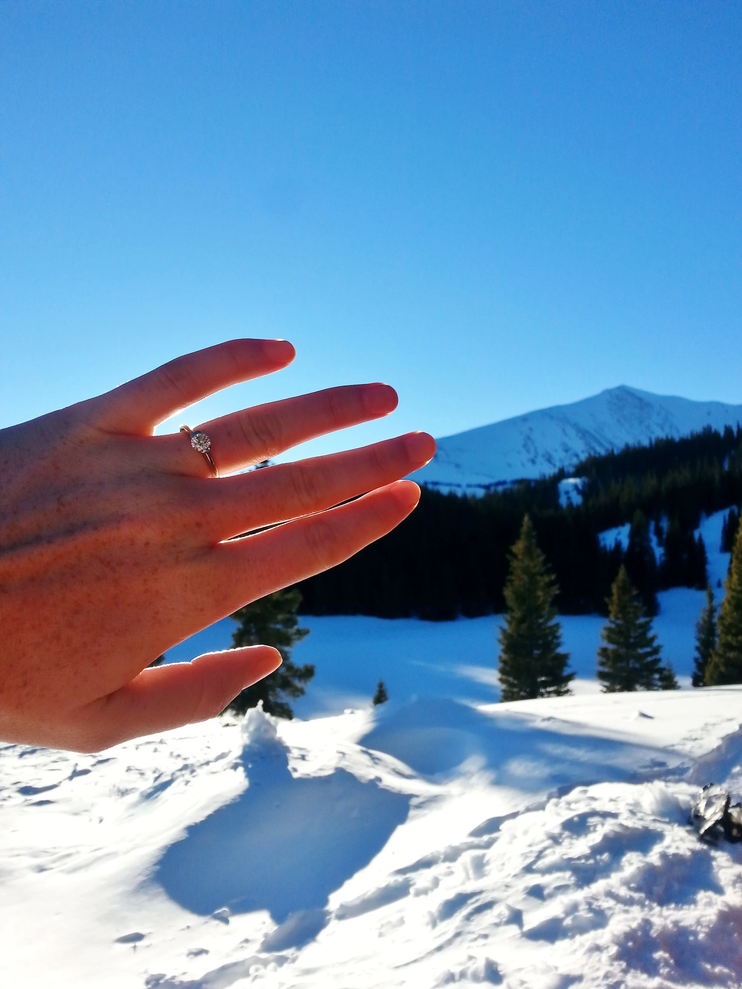 Sarah and I had a lot to fit in this Colorado trip.  We started off with a beautiful snowy day in Denver, where Sarah's Aunt Karen took phenomenal engagement picture of us in and around Red Rocks Park.  They turned out great and showcased all of Sarah's beauty and joy.  Karen's photography skills are so good that I didn't even look like a grinning dufus like I usually do in pictures!