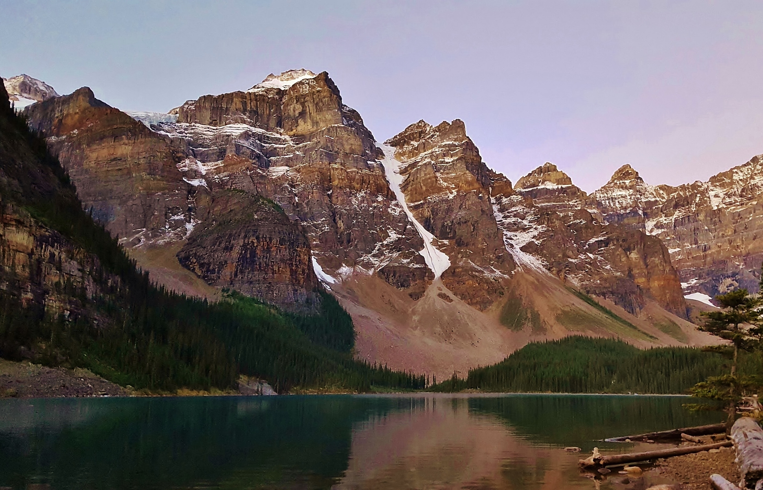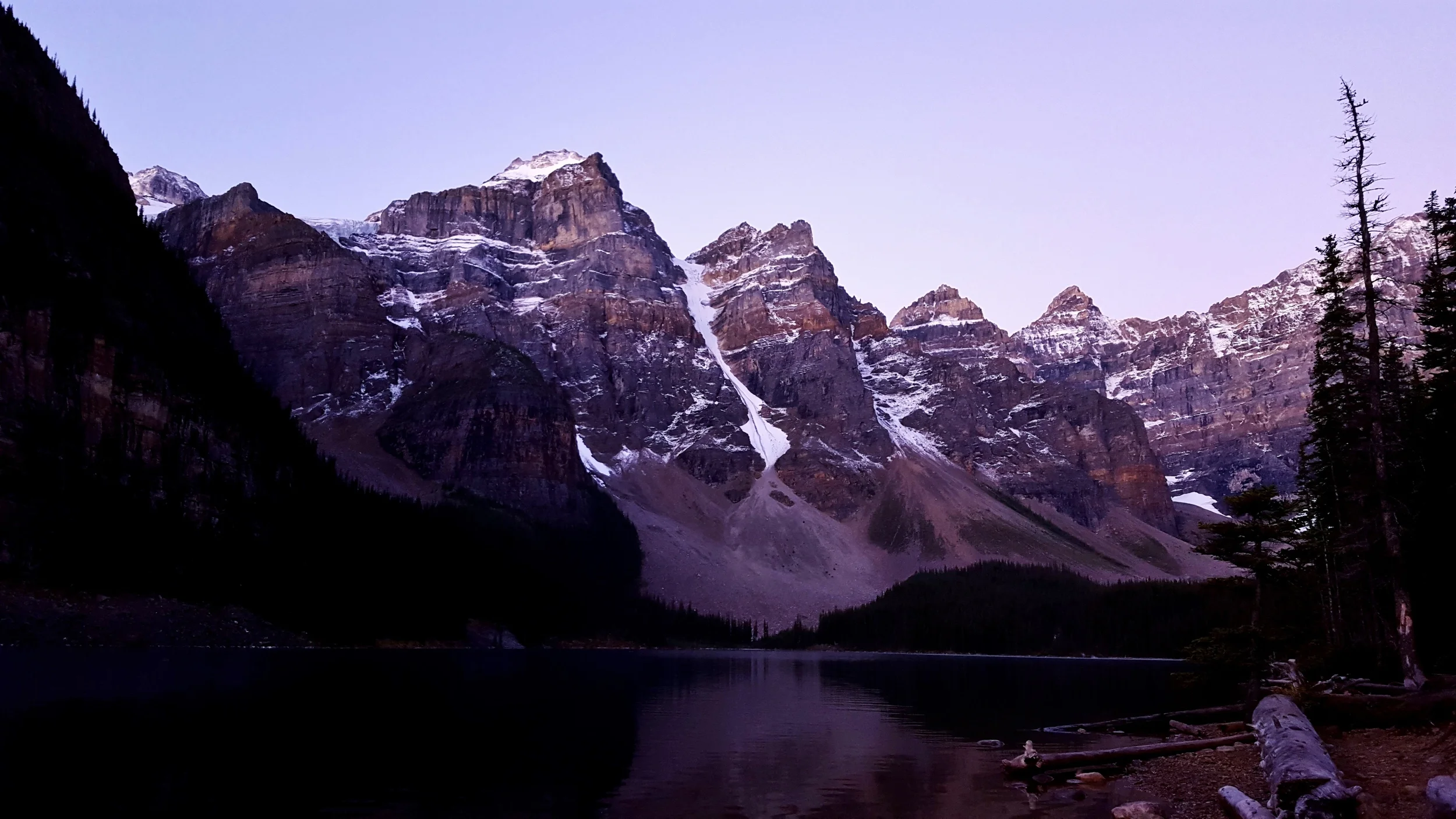 We started out for Moraine Lake well before dawn, and had first light to ourselves on the lake shore.