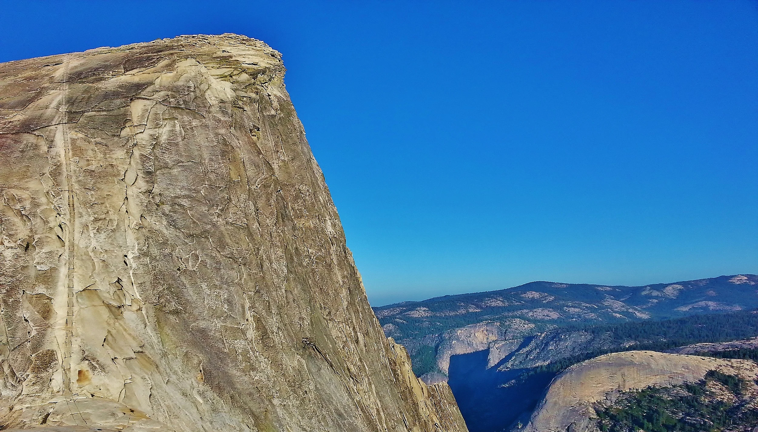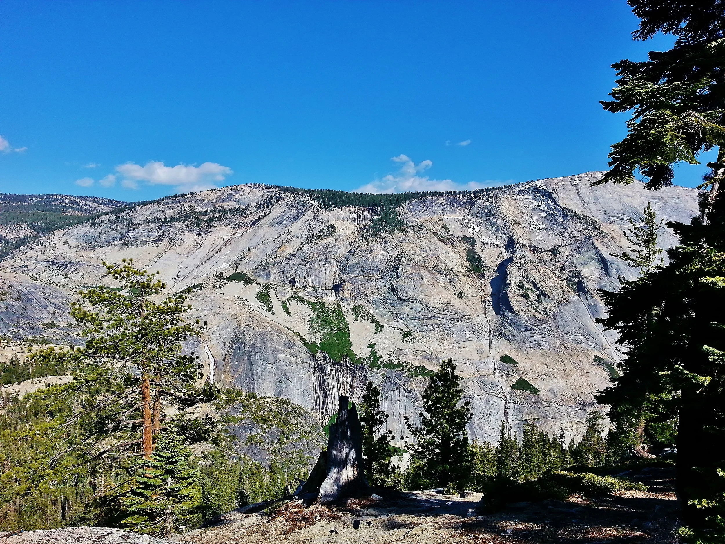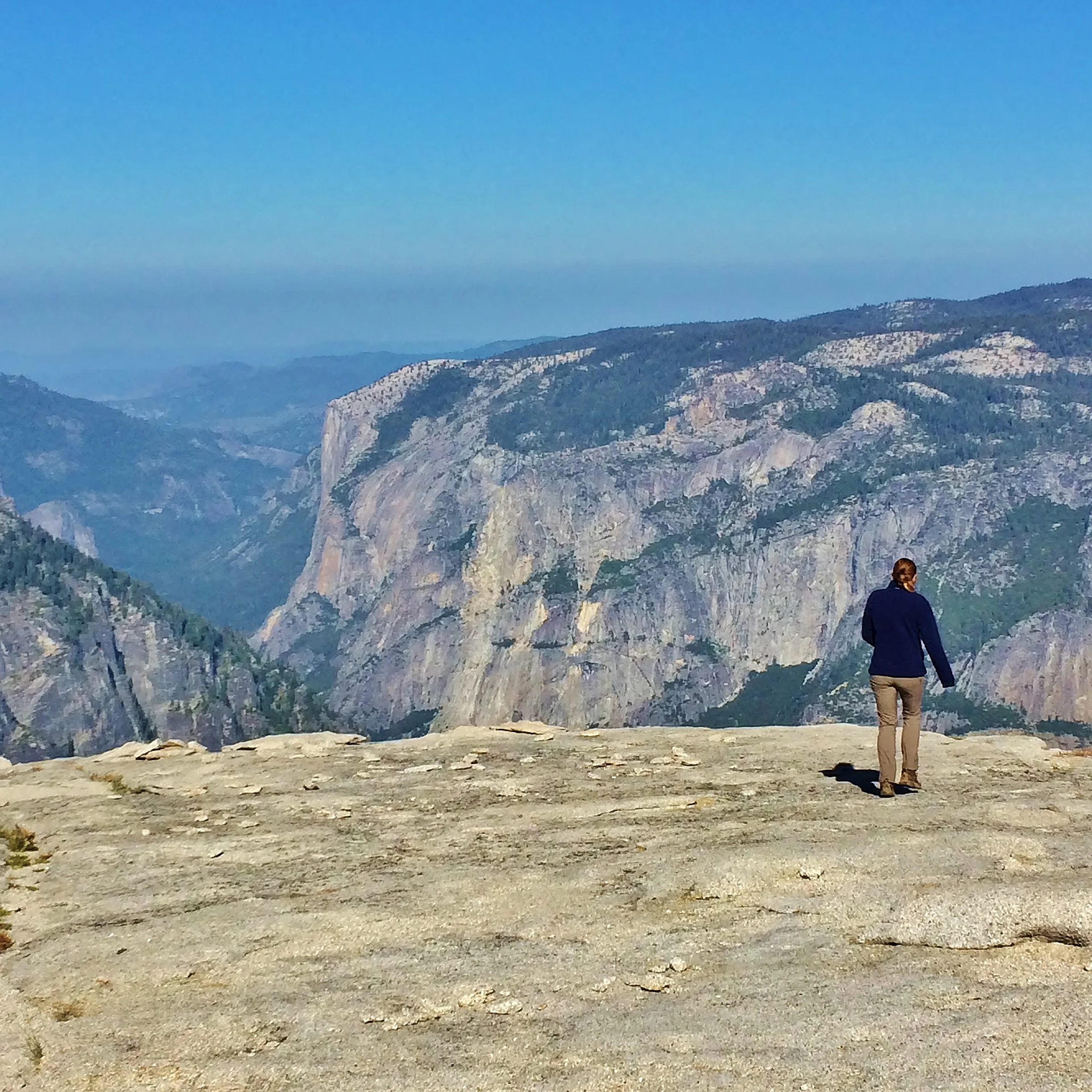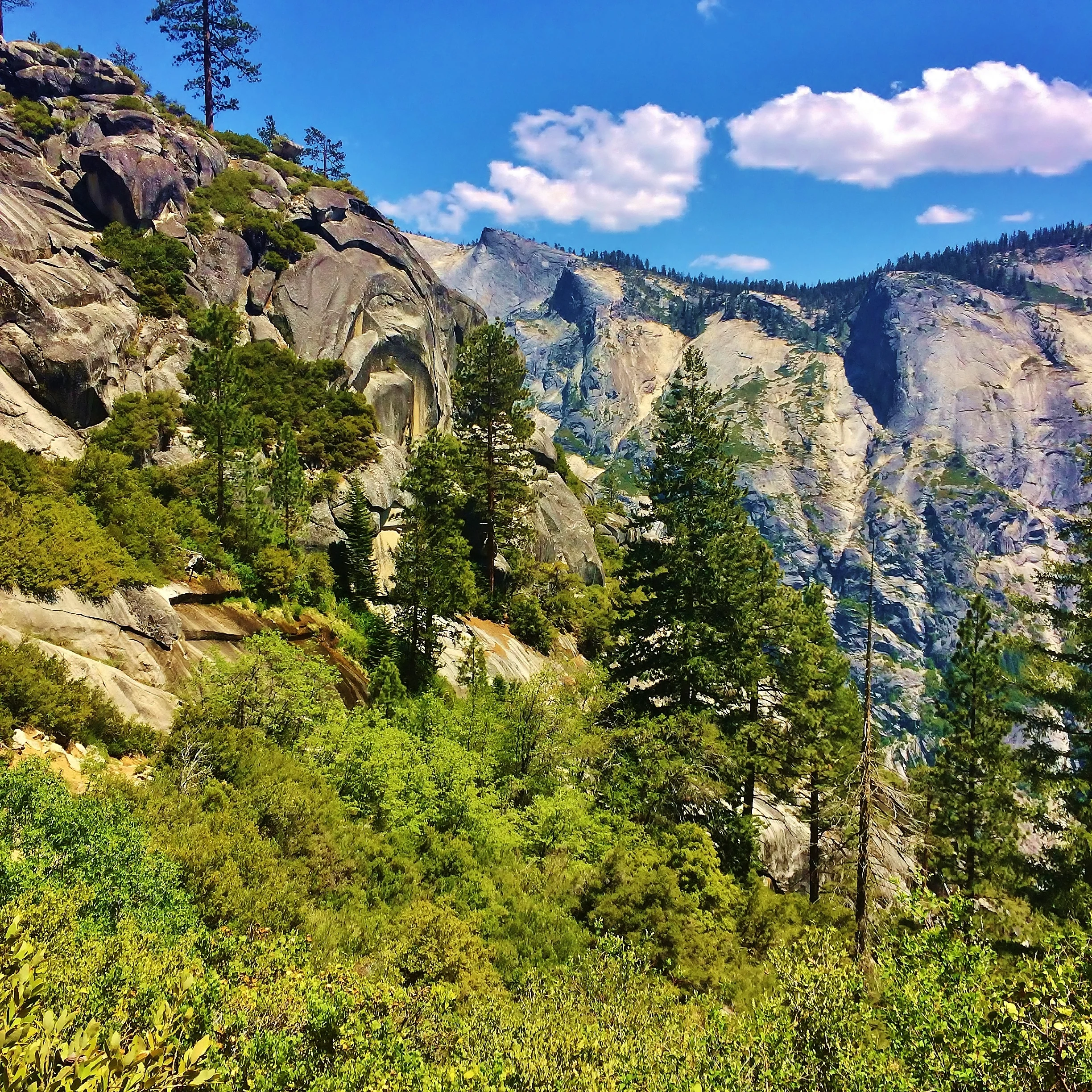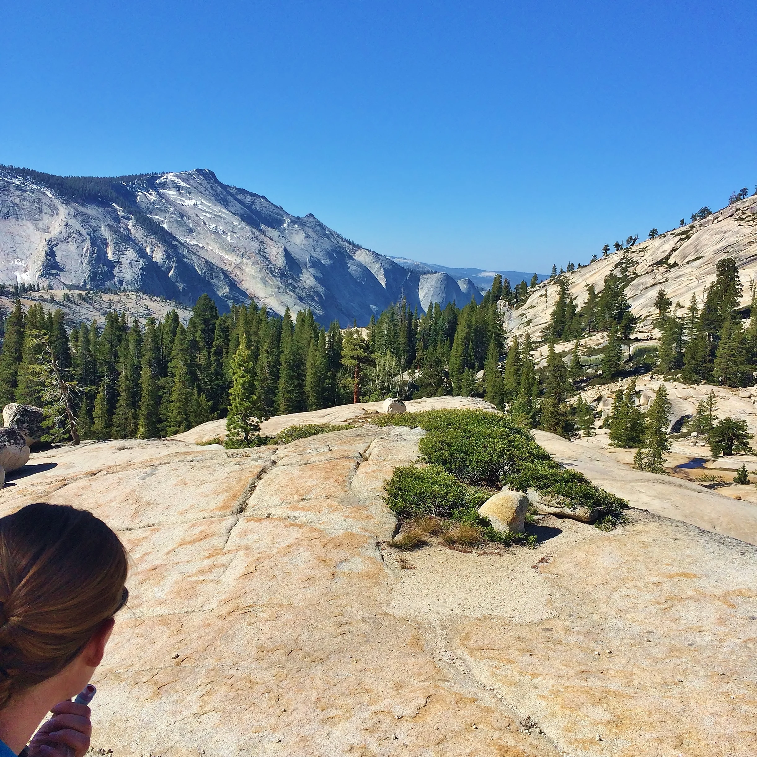 The trail started switch-backing up right after Mirror Lake, climbing from 4000 to 8000 feet in just over two miles. We had to take frequent breaks, but we had great views of the side of Half Dome and down into the valley.