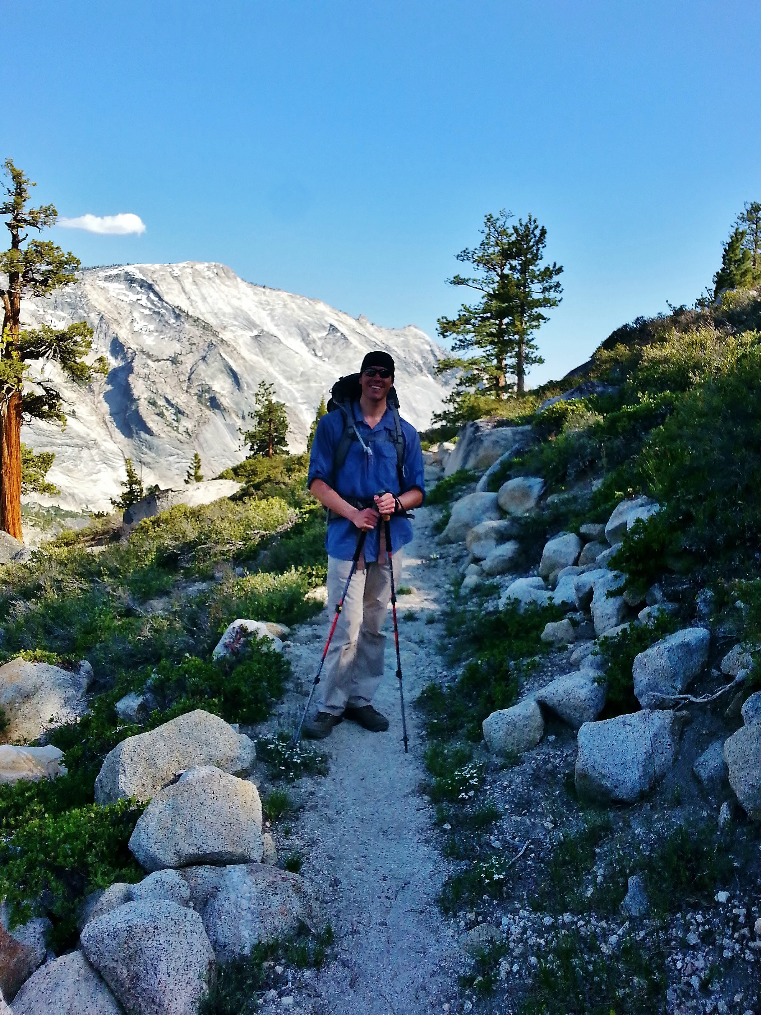 After figuring out the confusing parking situation, locating the Backcountry Office, and getting our permits after promising not to feed the bears or do similarly stupid and boorish things, we made our way to the trailhead. For our first hike, I'd managed to reserve a 3 day drip starting at Mirror Lake at the north side of the Valley, heading northeast to Tenaya Lake, then turning back south toward Half Dome, before descending into the Valley at Happy Isles at the east side. A mere 30 miles. Except I hadn't looked too closely at the topo lines...