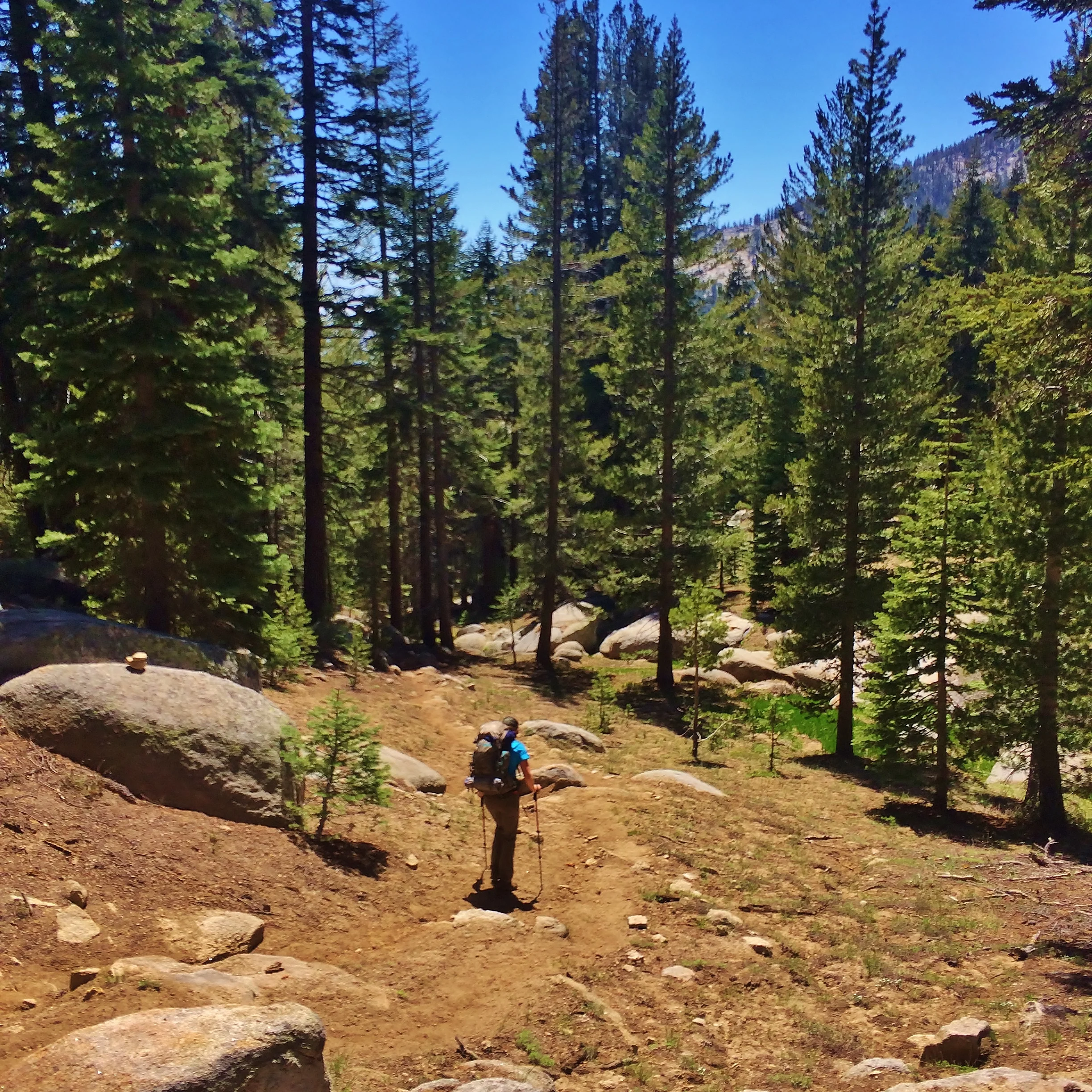 Giving up all that hard-won elevation, heading down to the junction with the John Muir Trail