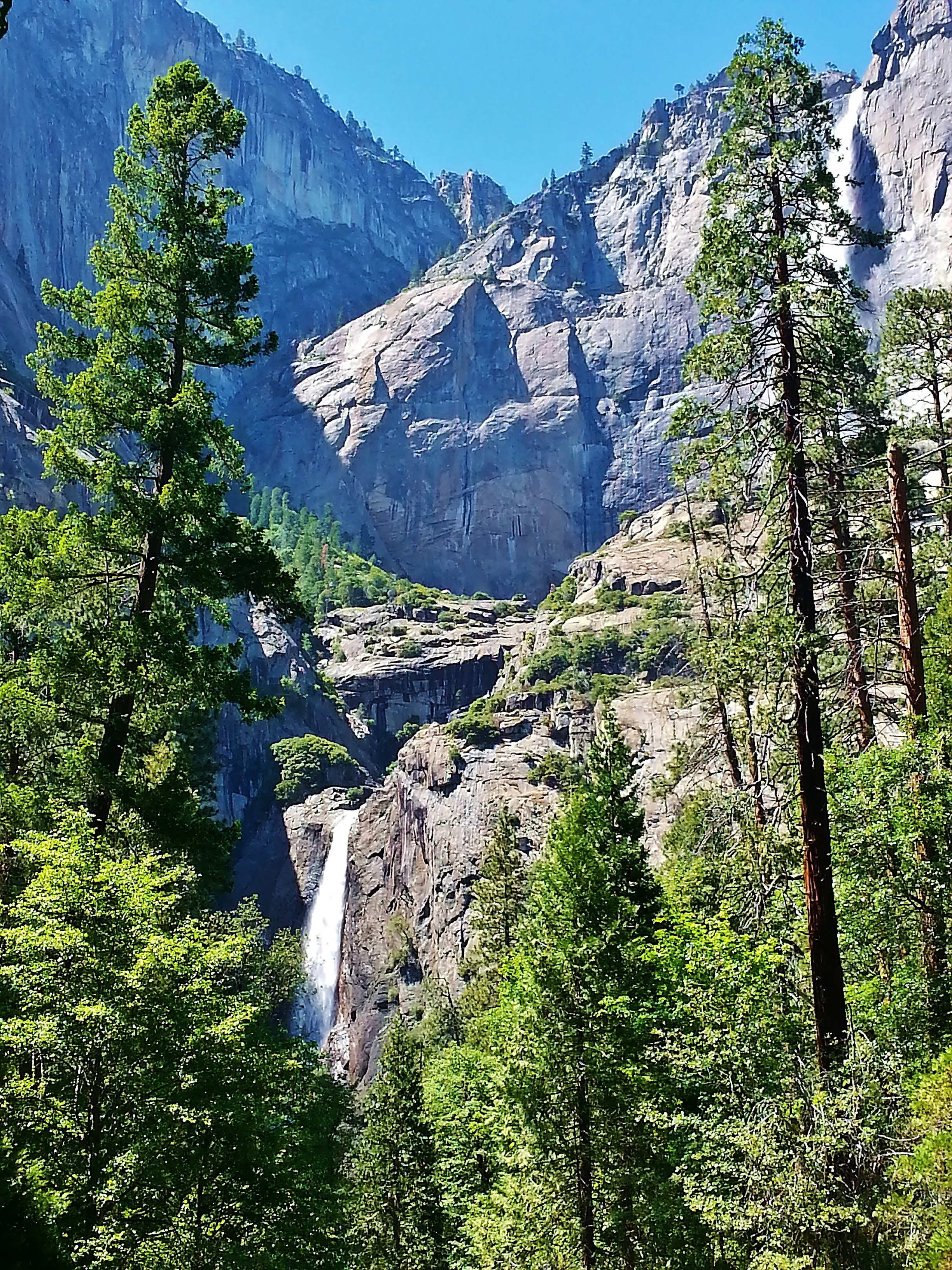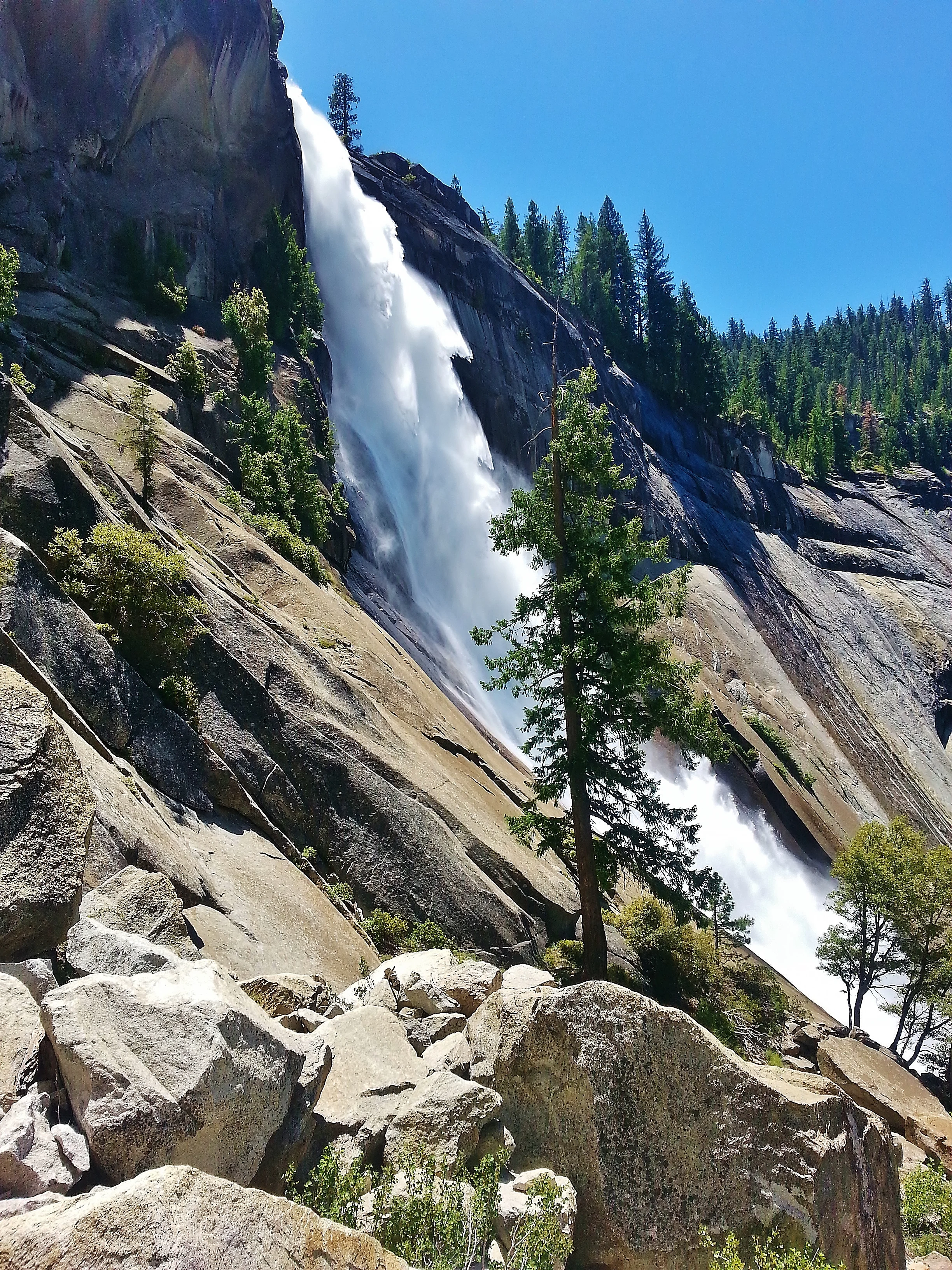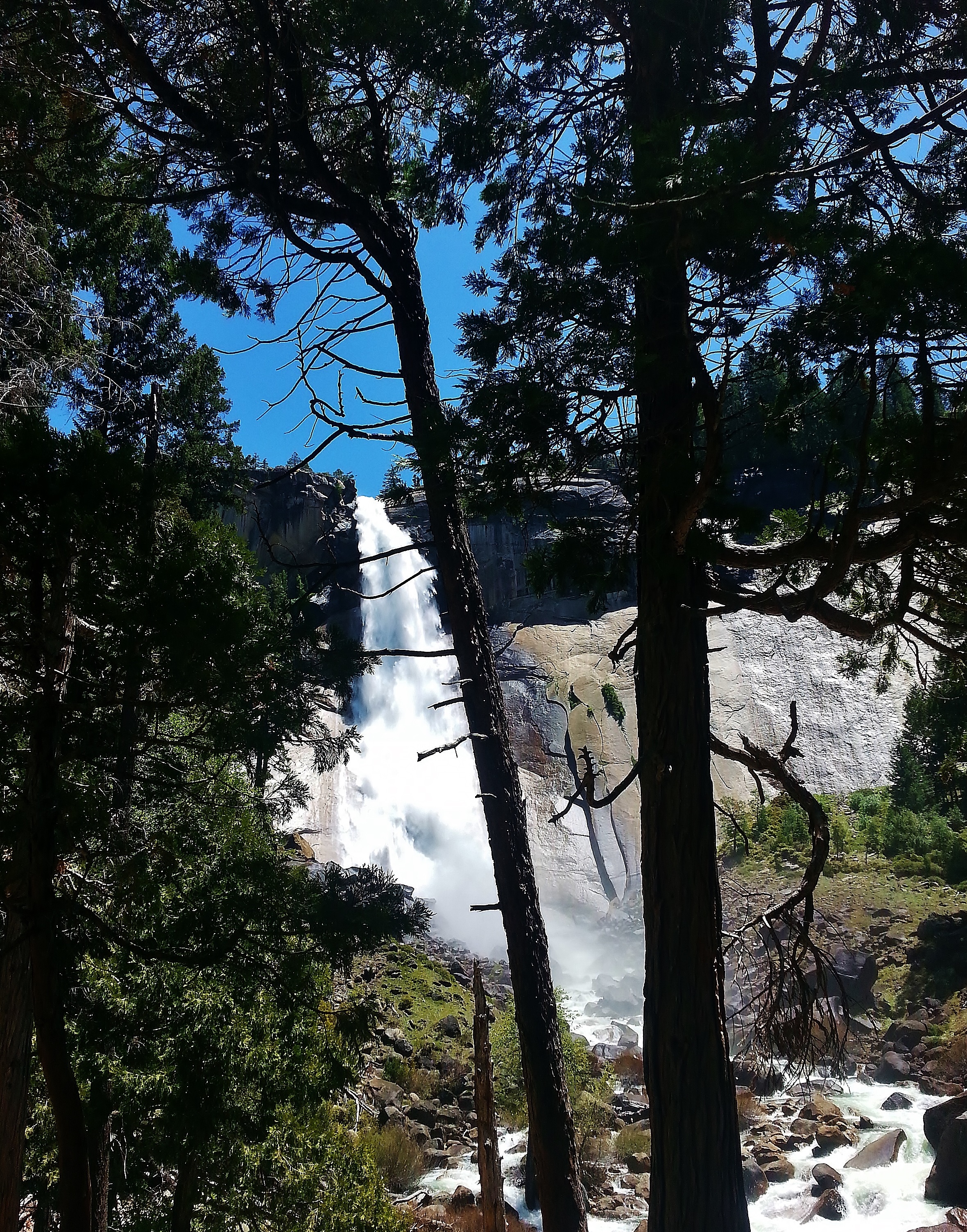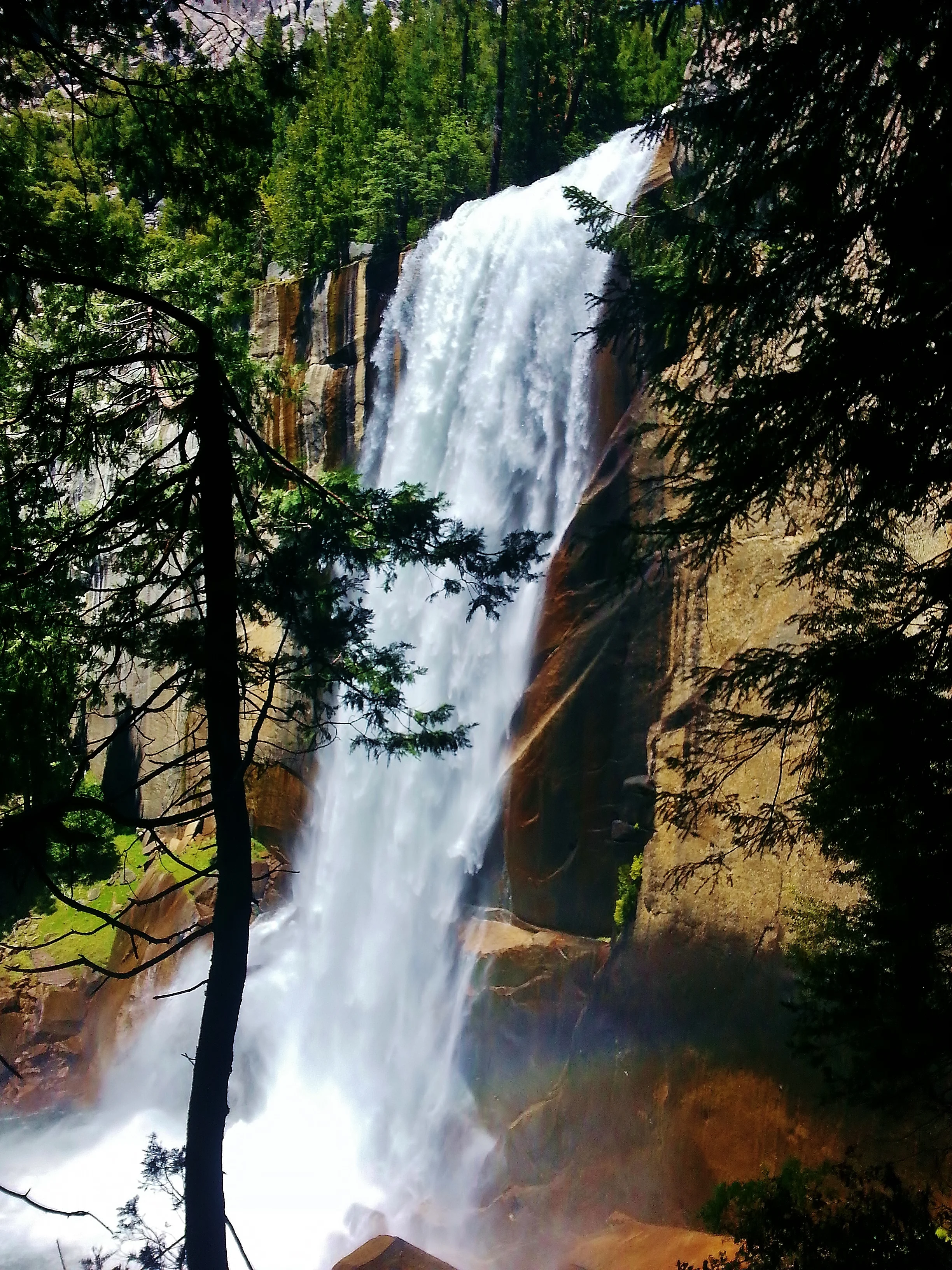 We started to feel fatigued on the way down, since we were going on about 2 hours sleep after a 13 mile trek that day. We were energized by the sights of two great waterfalls on the way down--Nevada Fall and Vernal Fall. Though our late spring timing had run us into snow the day before, it made for some powerful falls, which can dry up by the end of the season.