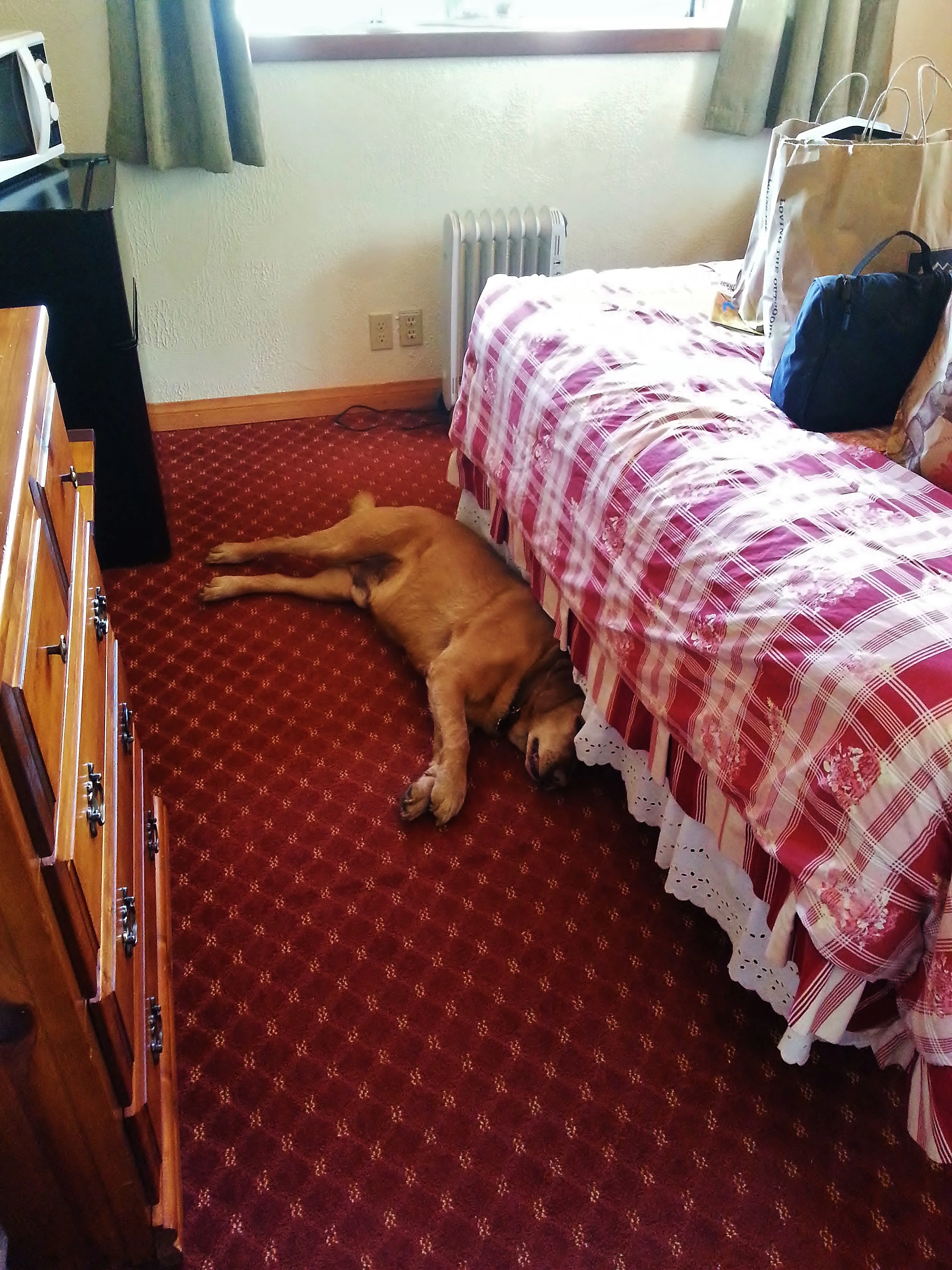 After heading out of the backcountry the next day, we headed down to Mammoth Lakes, CA, desperately in need of extended showers (the Currie cabins in Yosemite had common shower buildings with stalls. We checked into a quaint little hotel, where the owner's dog Enzo decided to hang in our room for a bit. After almost running the place out of hot water, we did something that no Sarah and Dan vacation would be complete without--visiting a craft brewery. In this case it was Mammoth Brewing Company, whose beers we had been introduced to in the Sequoia and Yosemite commissaries. This was followed by a nice dinner and trying out some whiskeys at a local's spot called the Clocktower. The next day it was off through the Nevada desert towards Zion.
