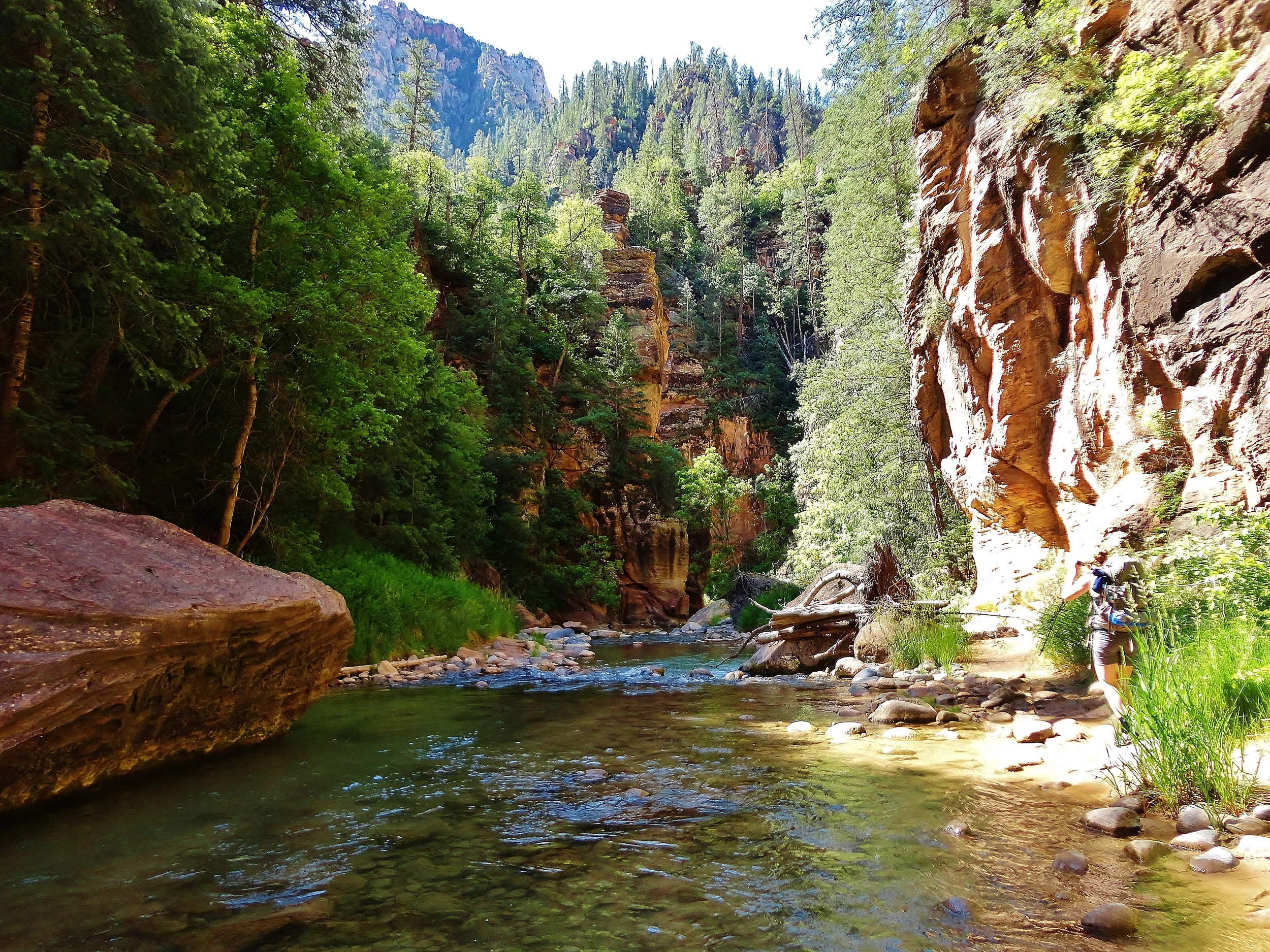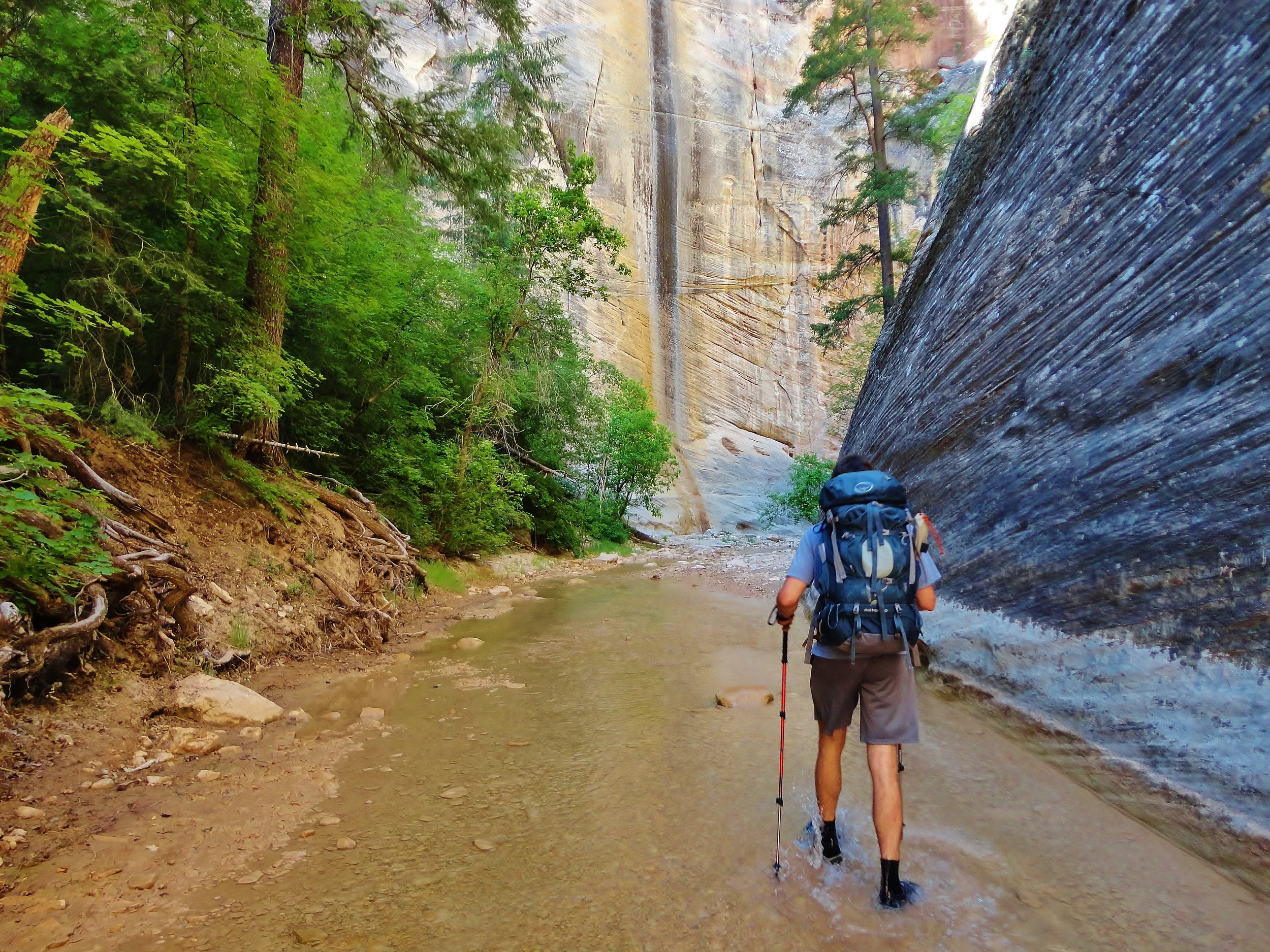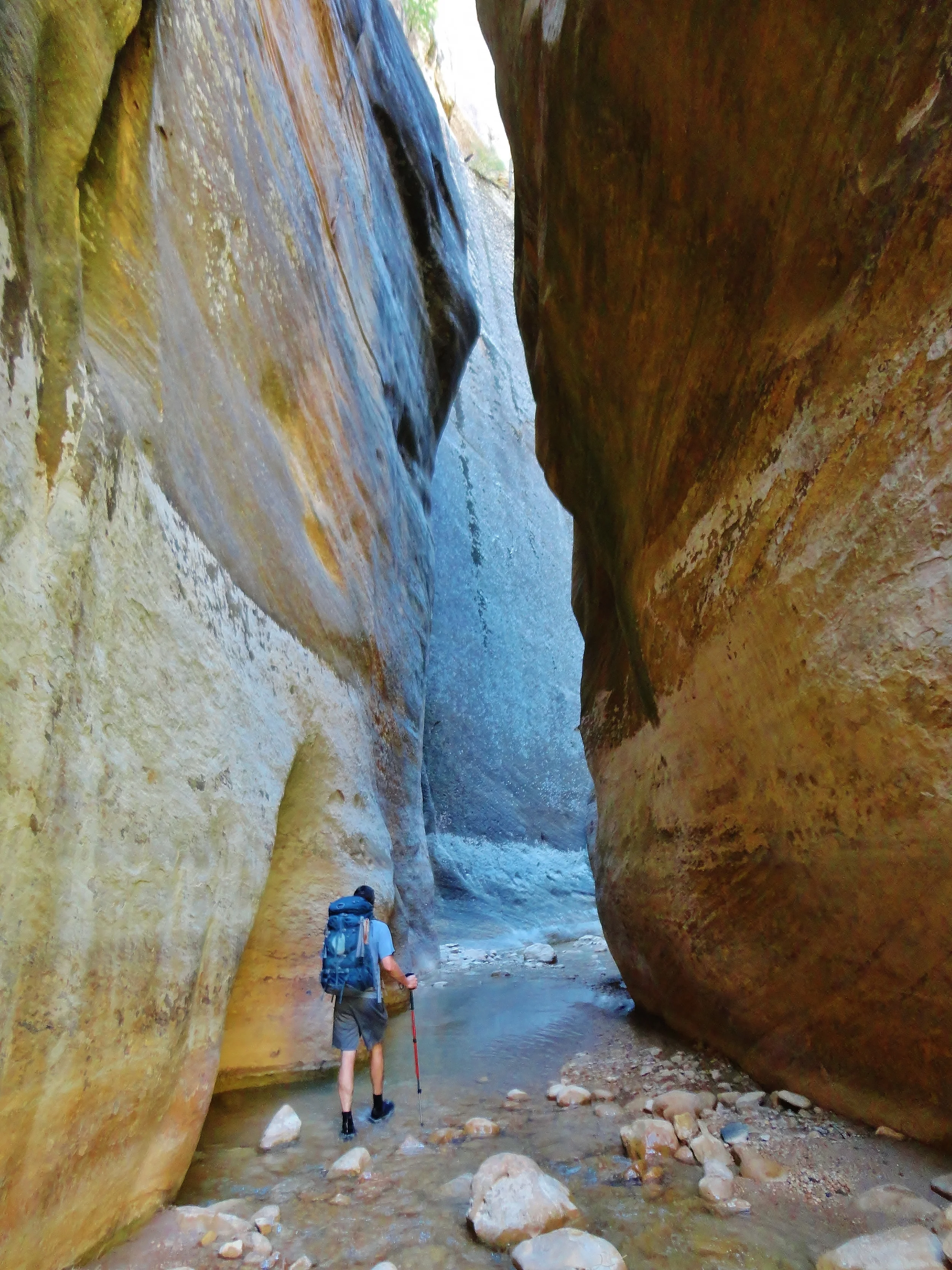 The water flow was low this year, so we made it about half of the way without having to do too much wading, and we managed to escape getting our packs wet (mostly)