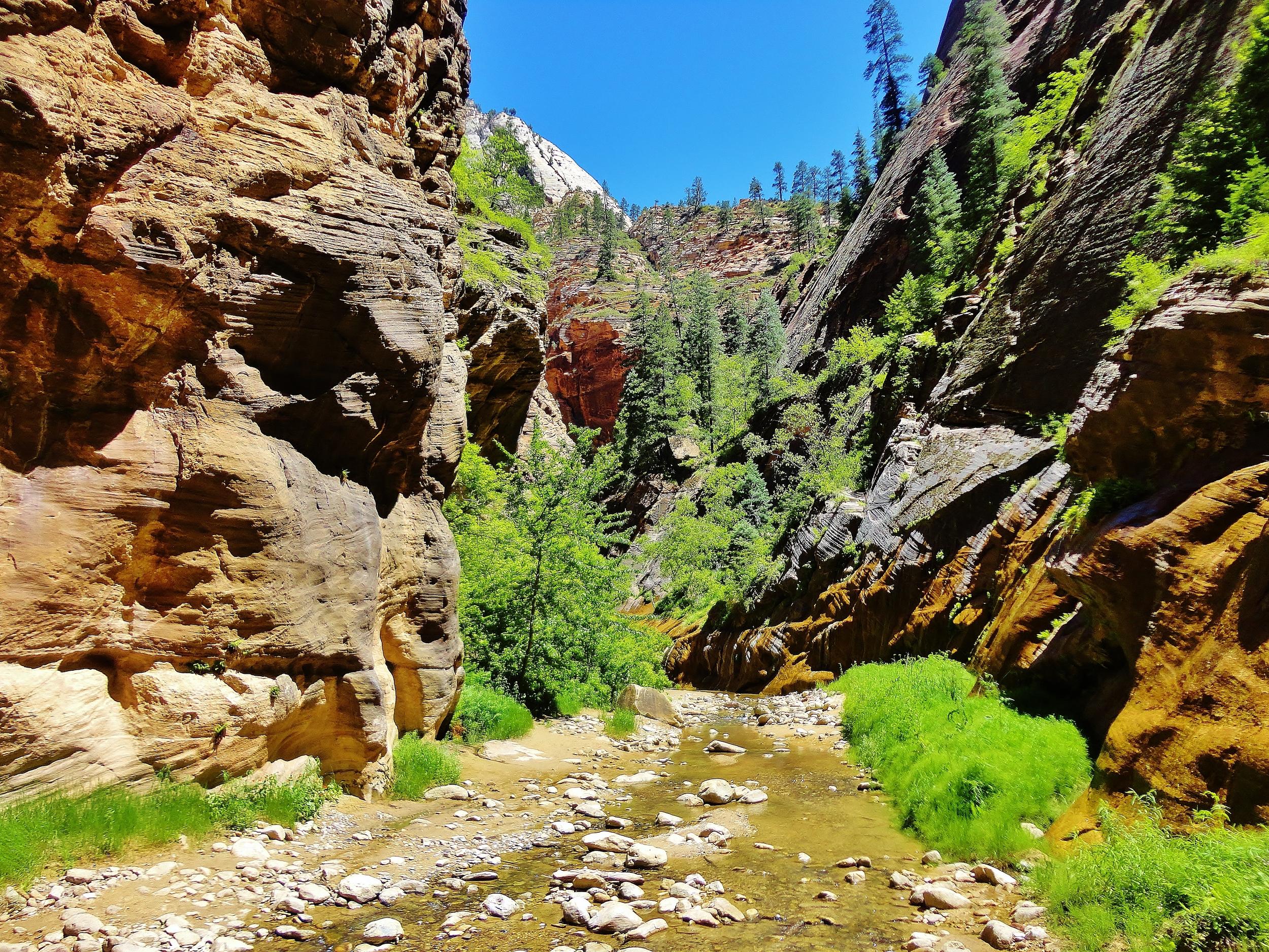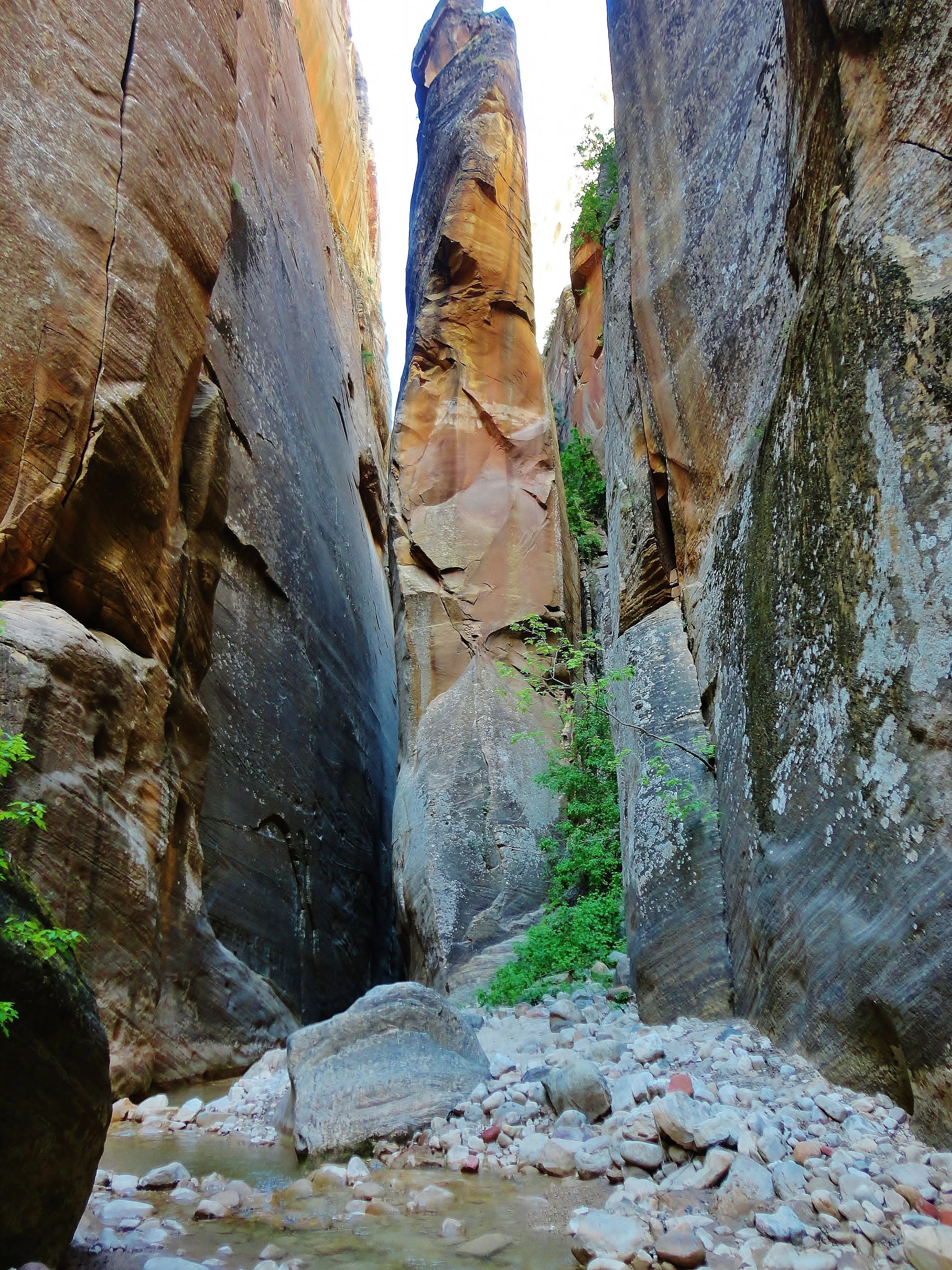 Since we had time, we took a side trip up Orderville Canyon, a tributary into Zion Canyon. The walls went from only about 15 feet wide into a grassy valley that was just beautiful.
