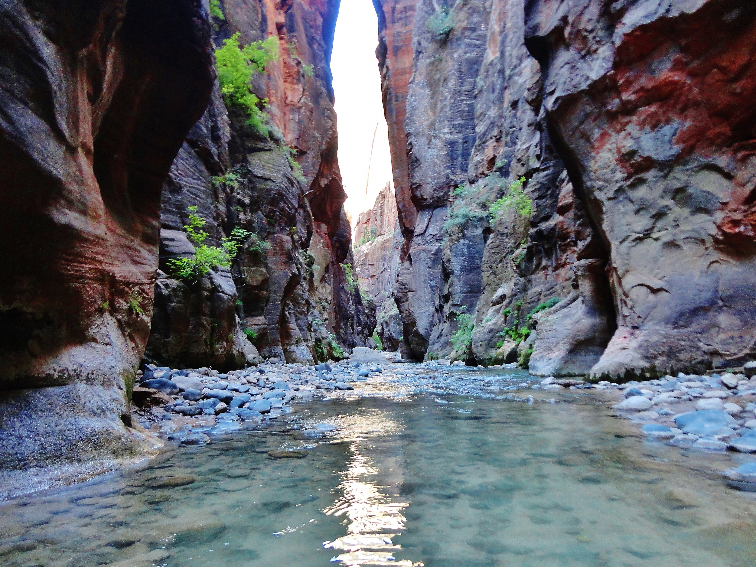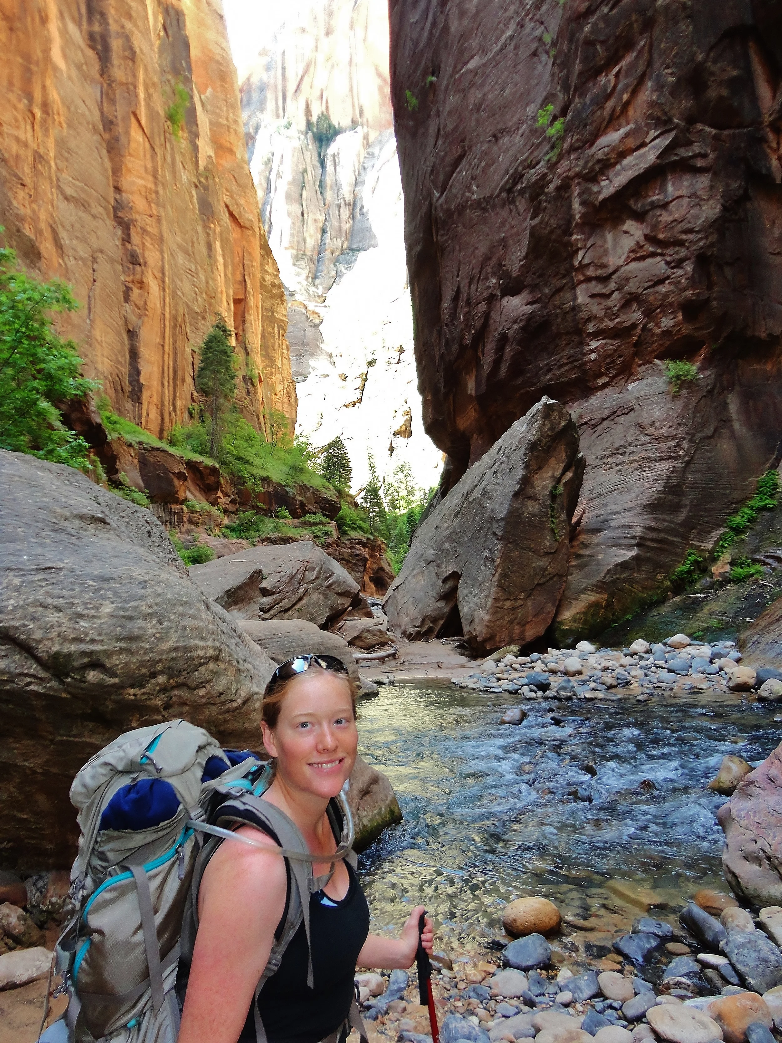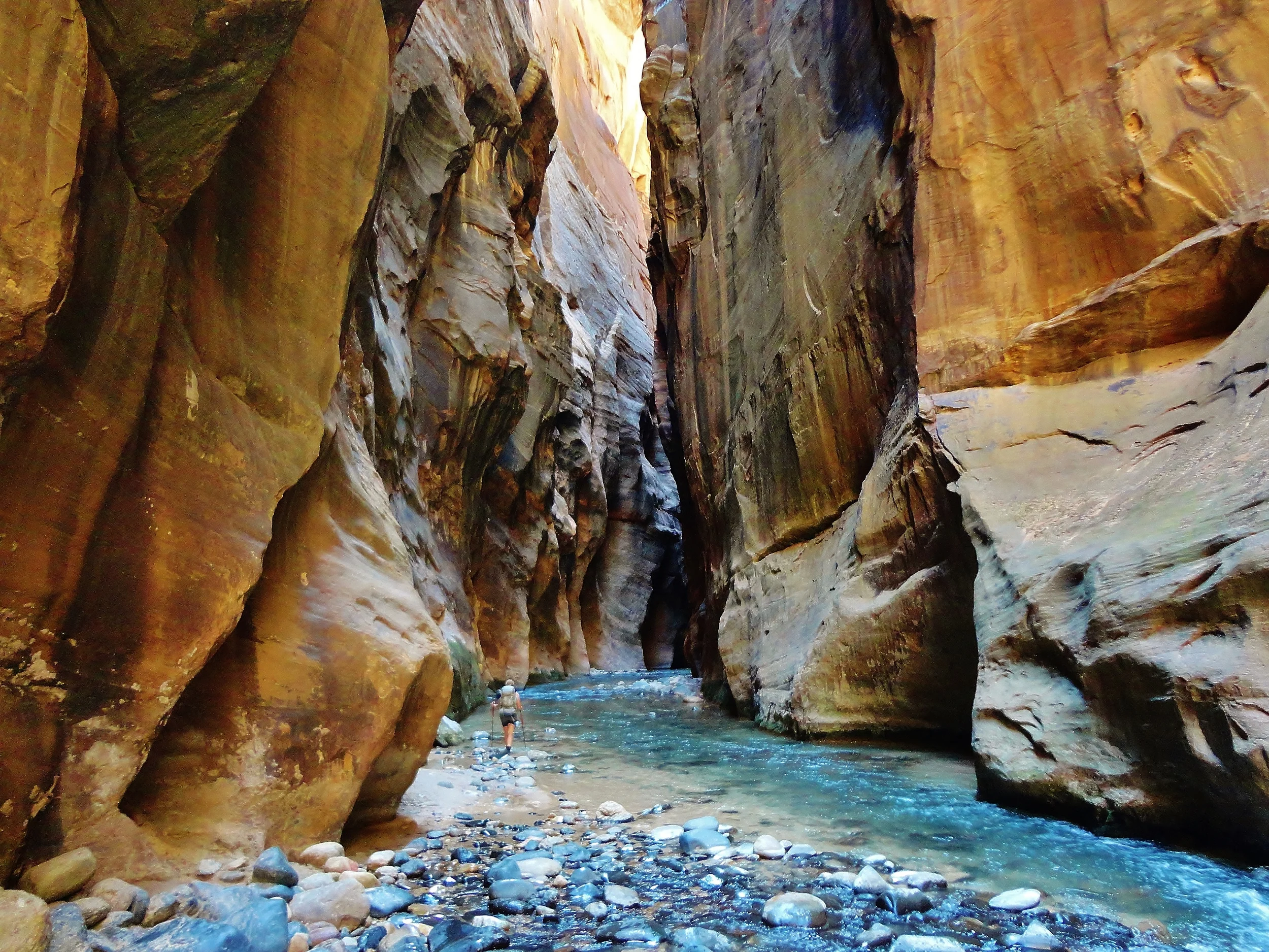 Hands down our favorite part of our Utah trip last year was Zion NP, and our favorite part of the park was the Narrows, a 16 mile stretch of the Virgin River passing through a very deep and very narrow canyon. Last year we only hiked a mile or two up from the bottom with the rest of the tourists, but we had decided to hike the whole narrows this year from the top down.